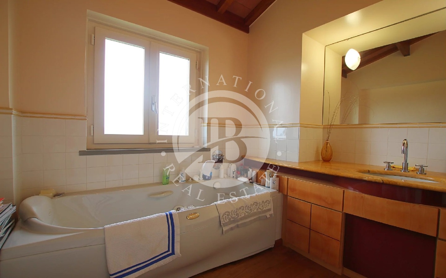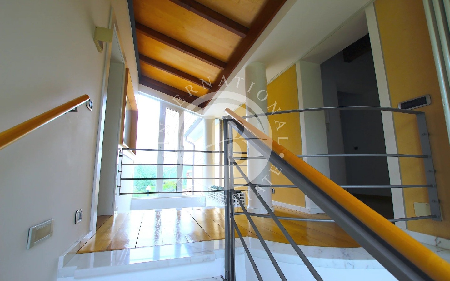 Percorrendo una elegante scalinata in marmo si accede, poi, al primo piano dove si trovano altre due camere da letto matrimoniale, uno studio e due bagni di cui uno con Jacuzzi.