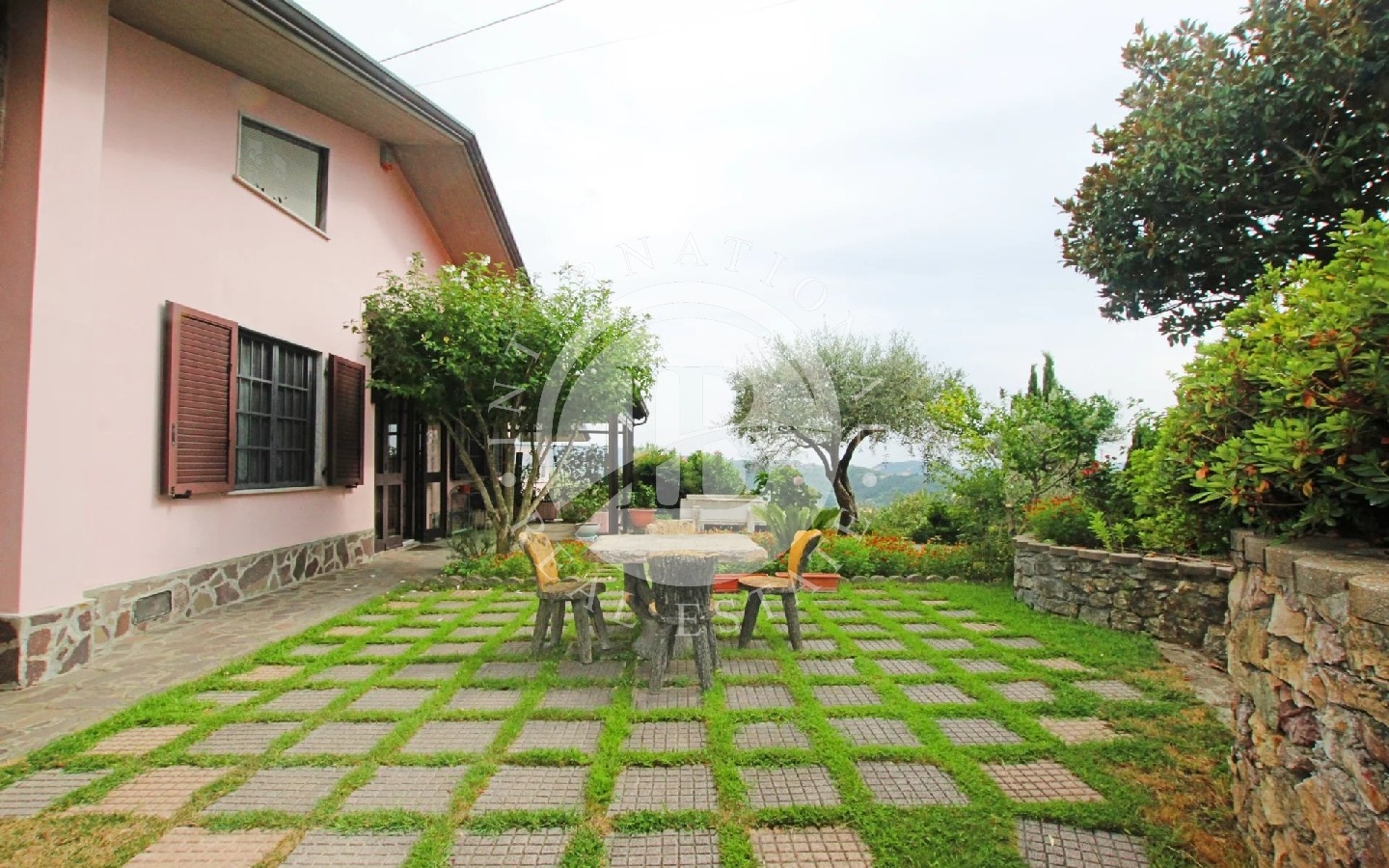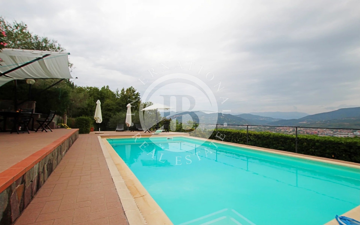 A completamento della proprietà lo splendido giardino che circonda l’immobile, dove si trova una bellissima piscina panoramica con vista che spazia da Sarzana alla prima Toscana, un pergolato ideale per pranzi all’aperto, 4 posti auto coperti, impianto di allarme e 150 ulivi in produzione.
