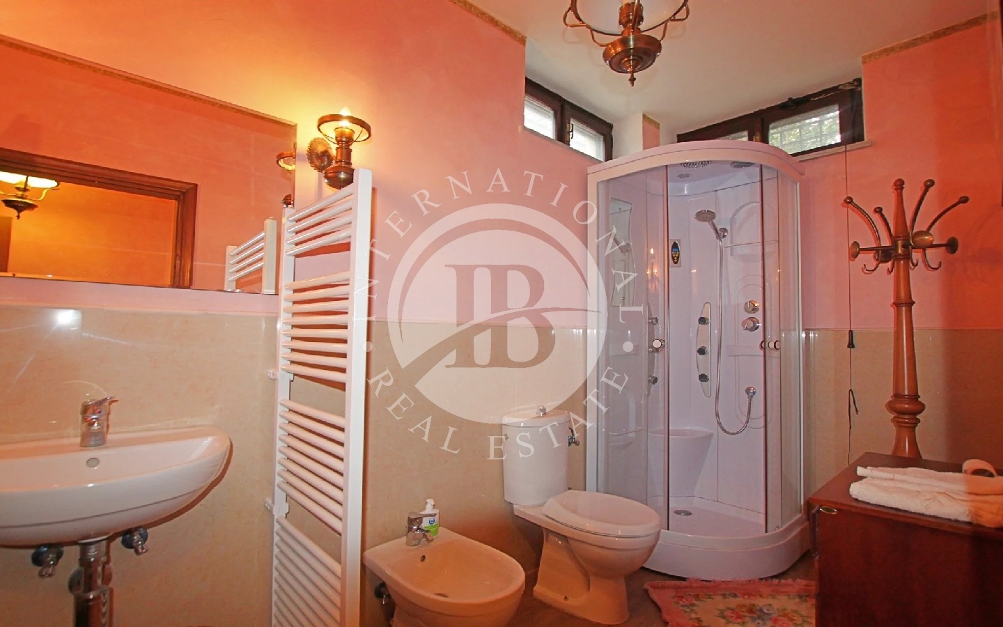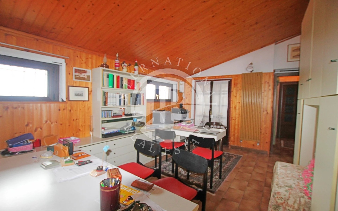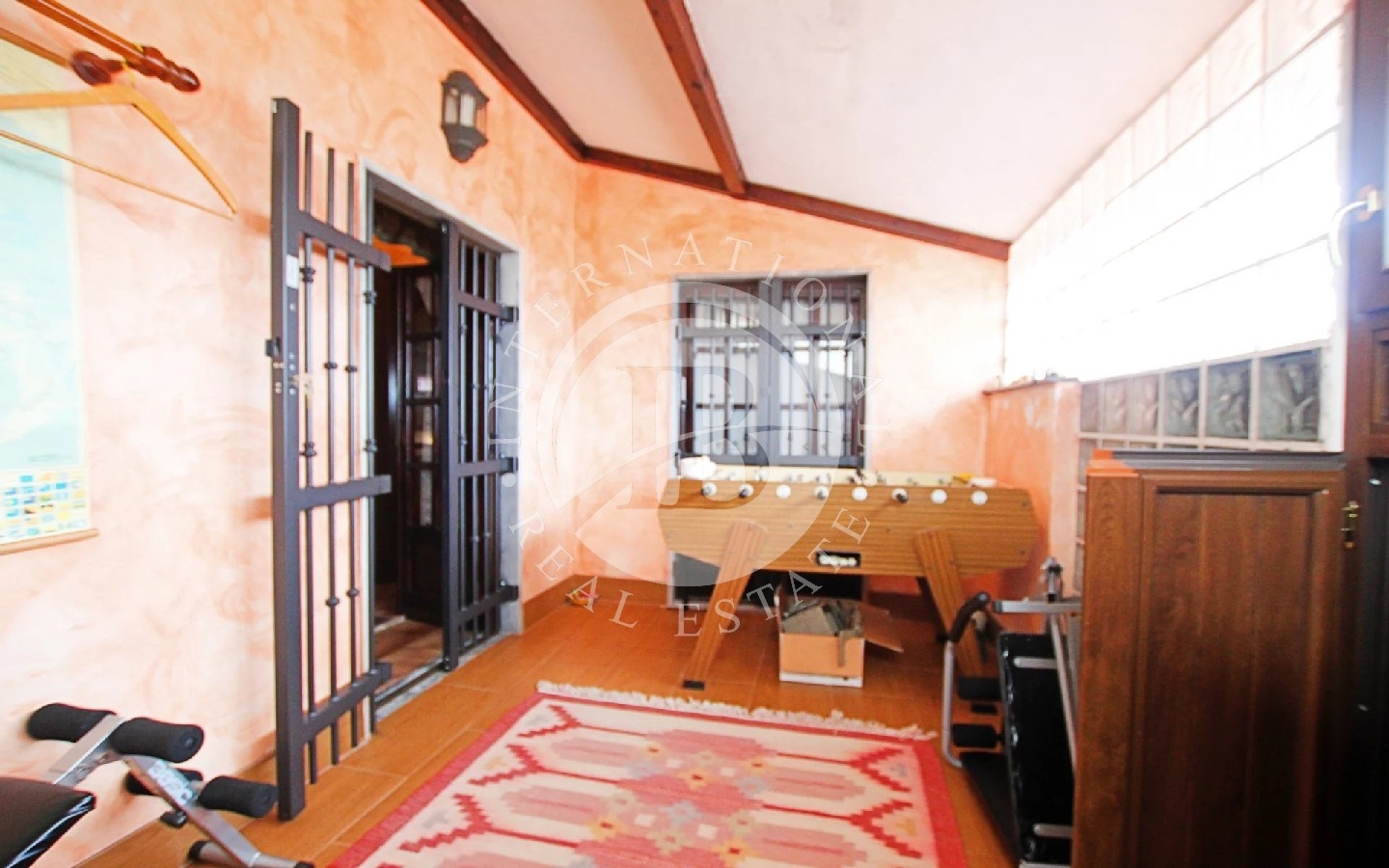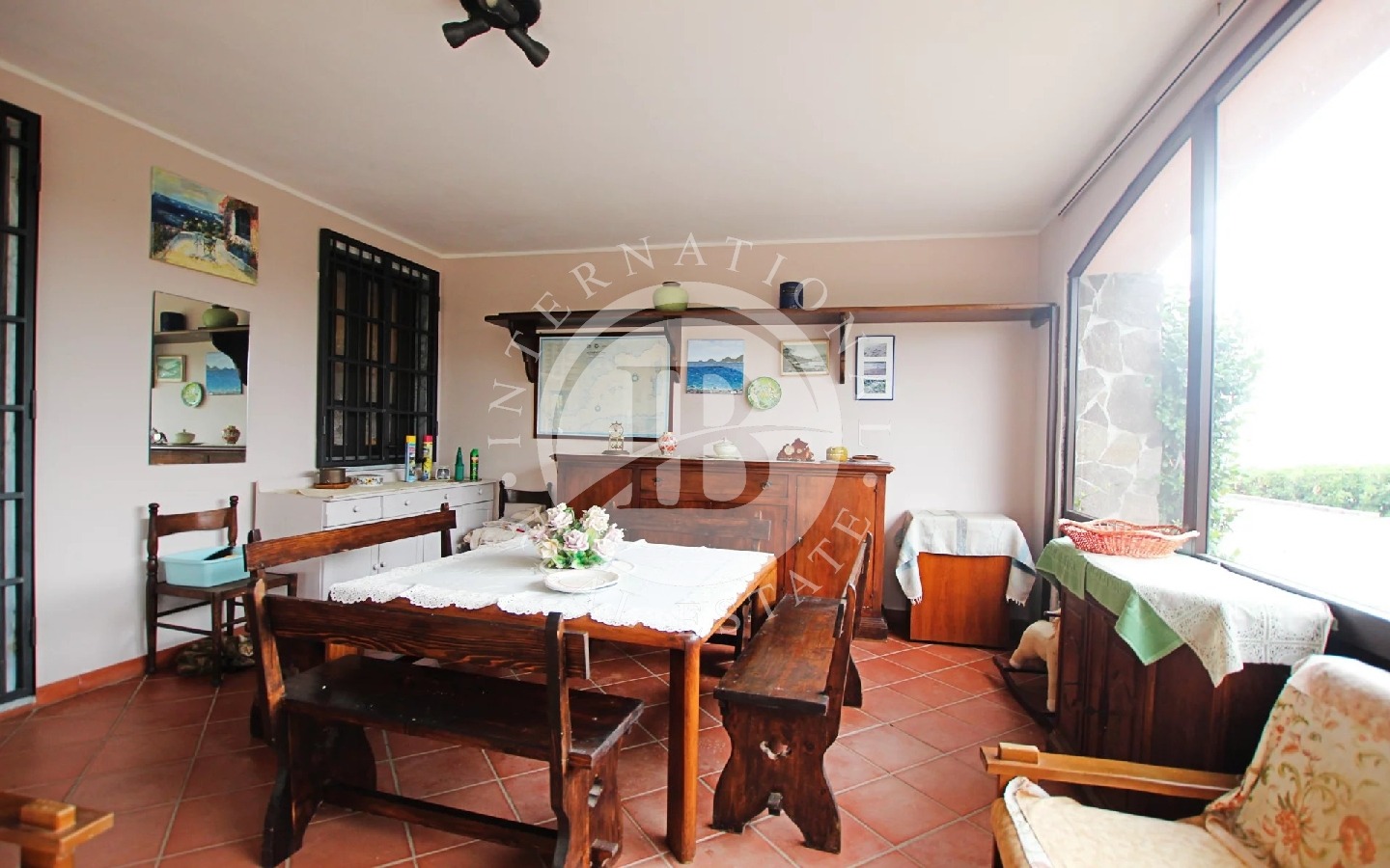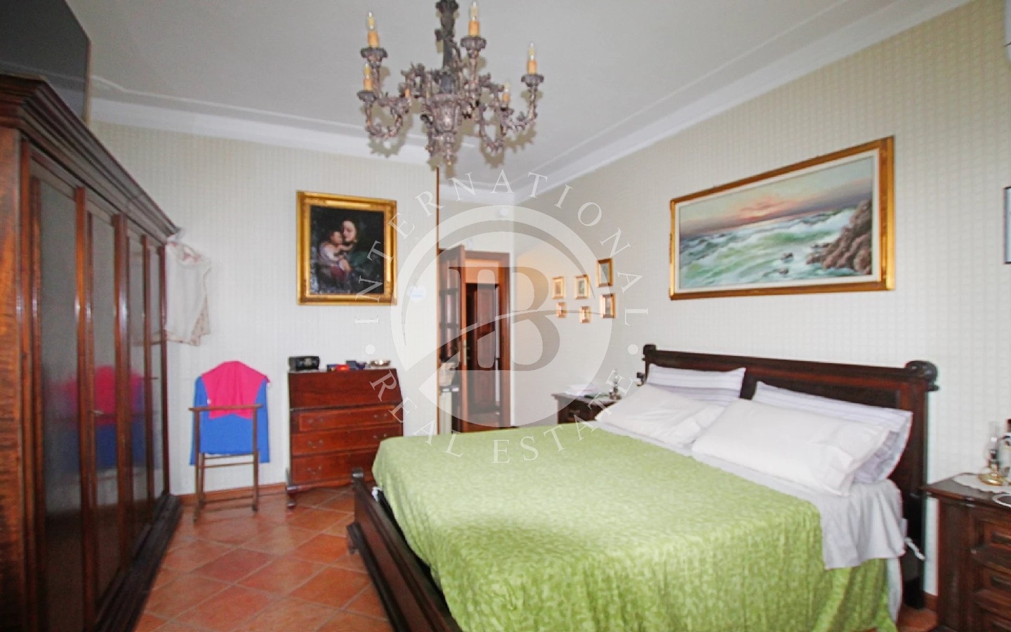 L’intera proprietà è rifinita con mobili di pregio e porte in noce.
