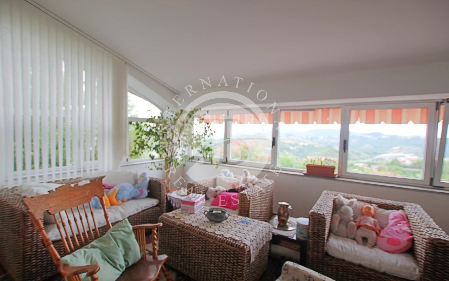 Dal disimpegno si raggiunge, poi, un grande salone con veranda annessa dalla quale si può godere dello splendido panorama grazie alle ampie vetrate, a due camere da letto e due bagni.