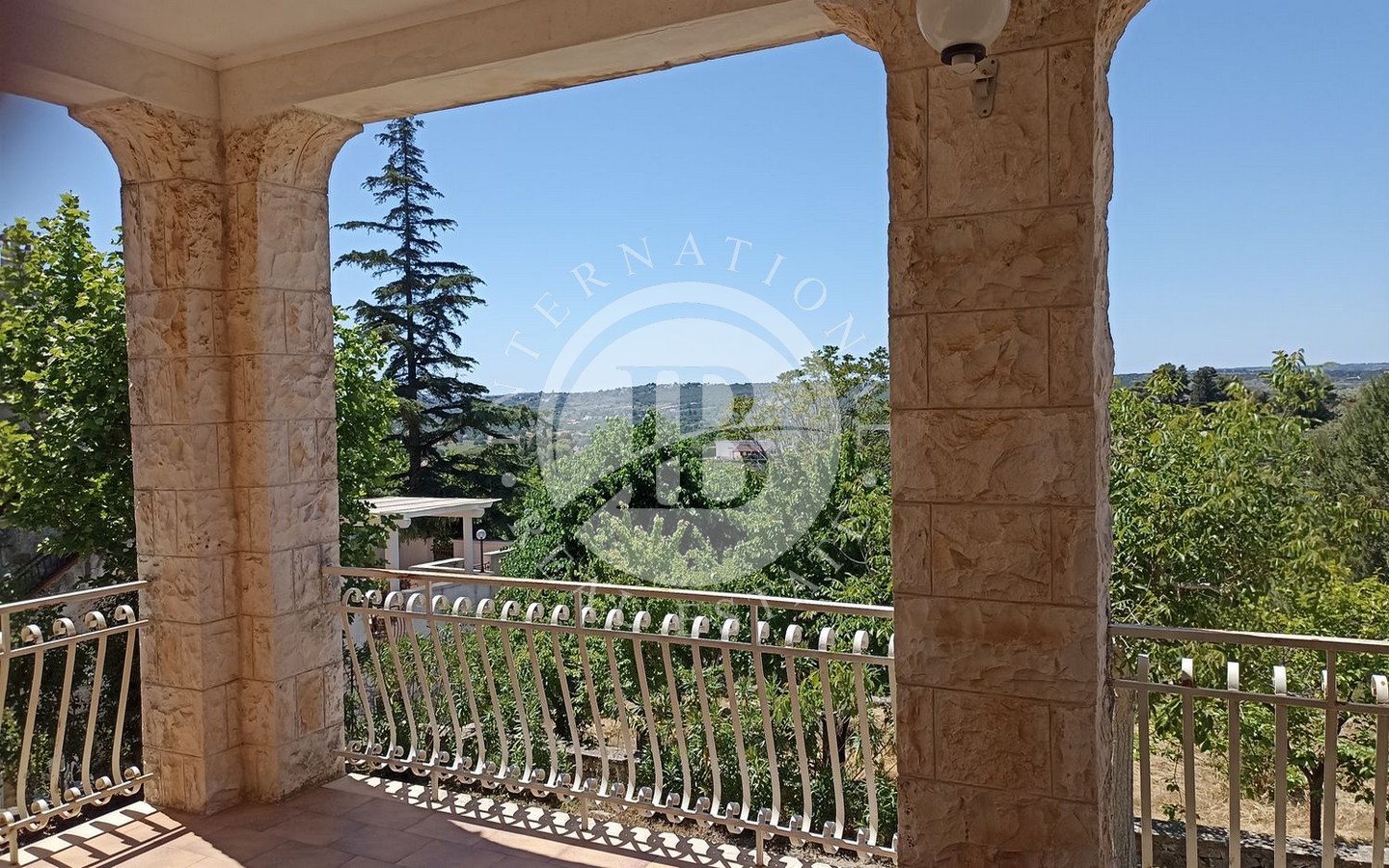 La villa è facilmente accessibile tramite una strada privata con ingresso recintato e parcheggio interno. La facciata sud, rivolta verso la vallata, offre una vista ininterrotta e spettacolare. Il terreno di 2500 mq, degradante verso valle su due terrazze principali, è aperto e pronto per essere piantumato con alberi, piante verdi o per la coltivazione di ortaggi. È in corso un progetto per la realizzazione di una piscina, che aggiungerà un ulteriore tocco di lusso alla proprietà. Con l'installazione di una scala sul tetto, si potrebbe creare uno spazio aggiuntivo per un solarium con una vista panoramica straordinaria.