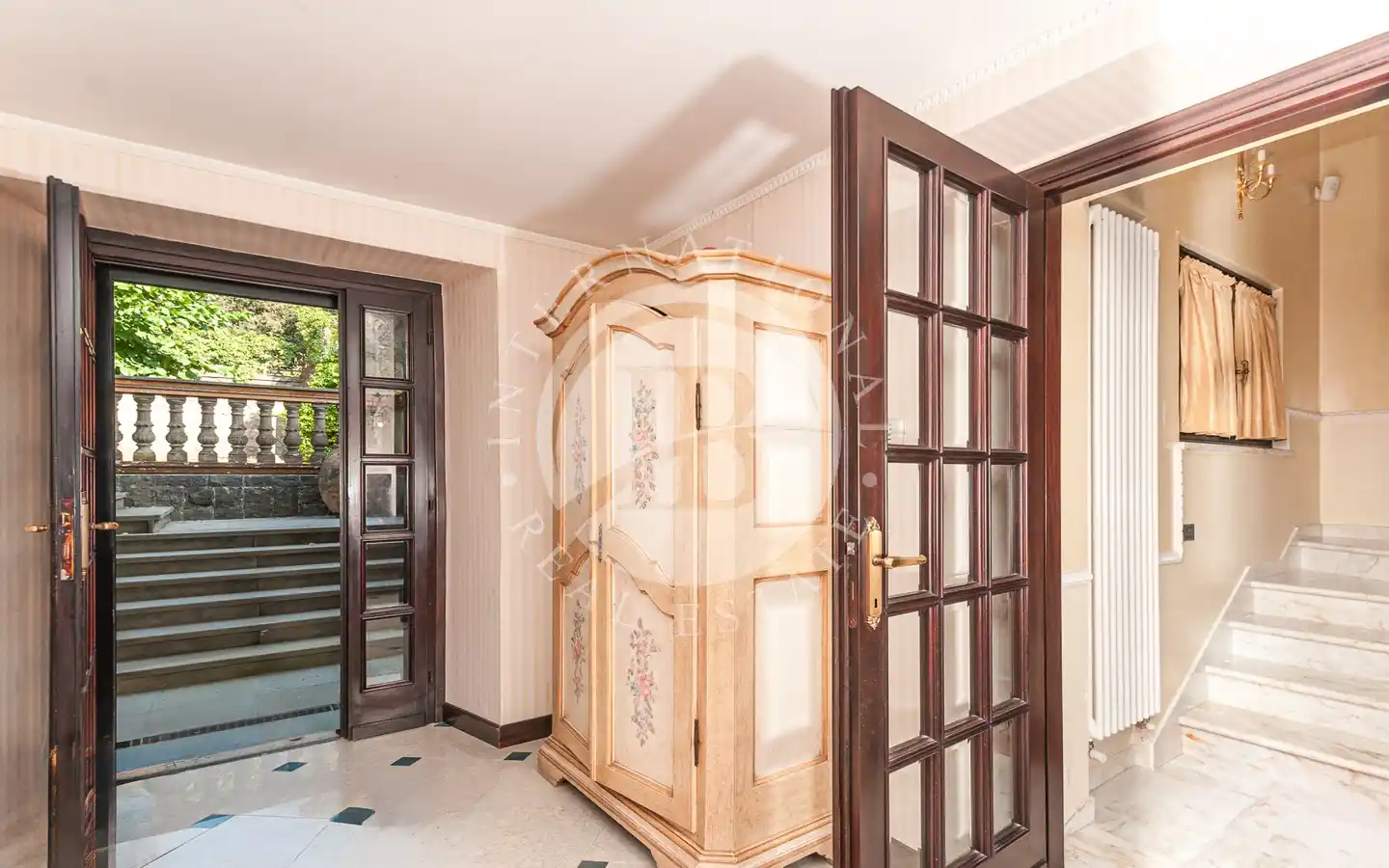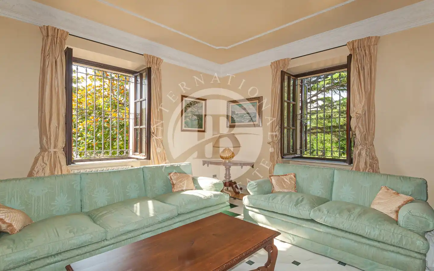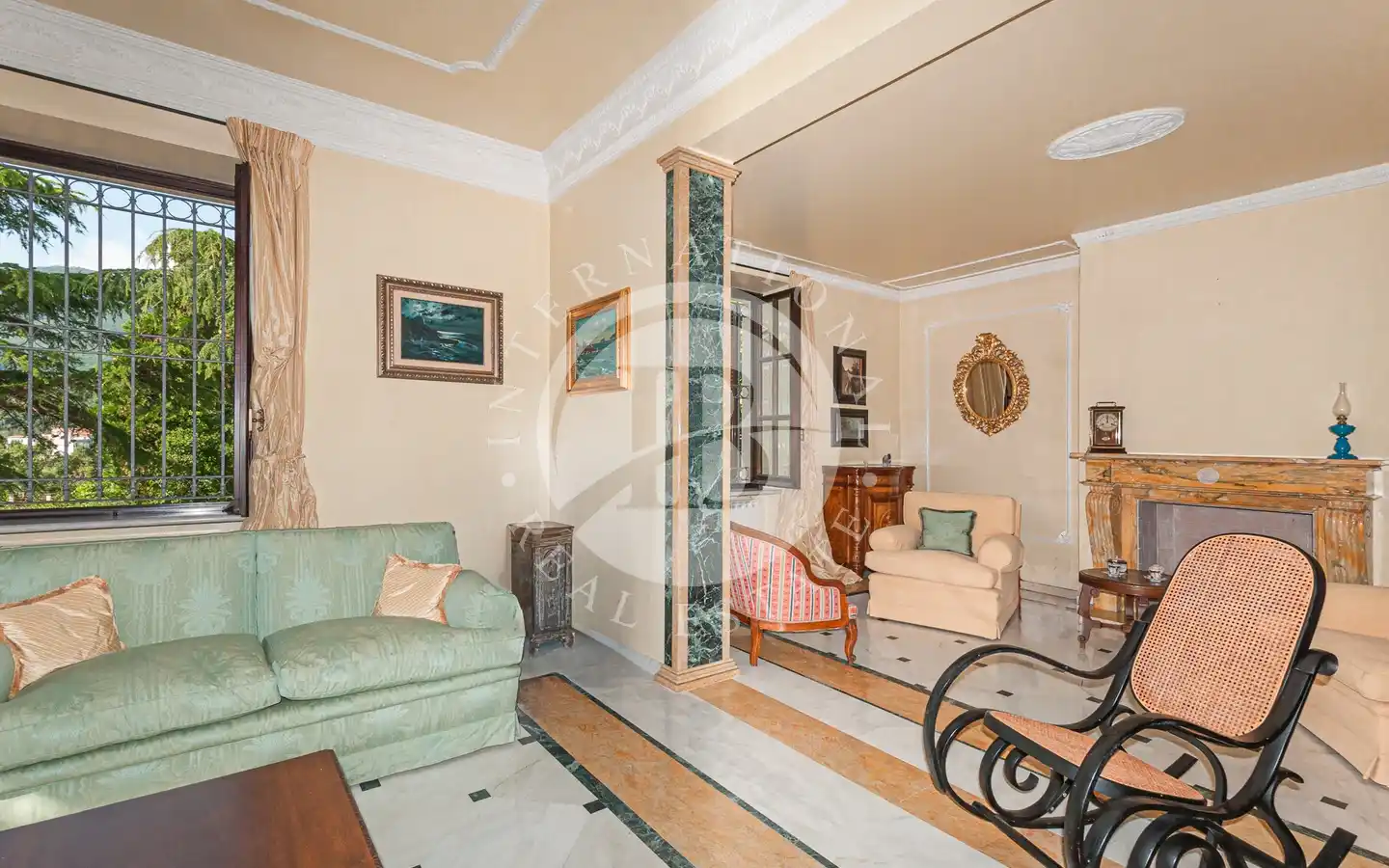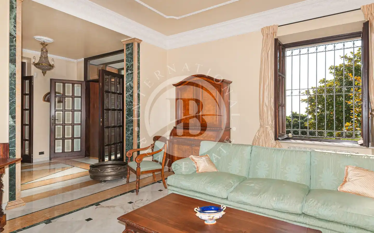 Al piano nobile si trova un elegante salone doppio con soffitti alti e ampie aperture sul giardino, ideale per ricevimenti e momenti conviviali, oltre a un raffinato vano studio, pensato per chi desidera un angolo di lavoro o lettura riservato.