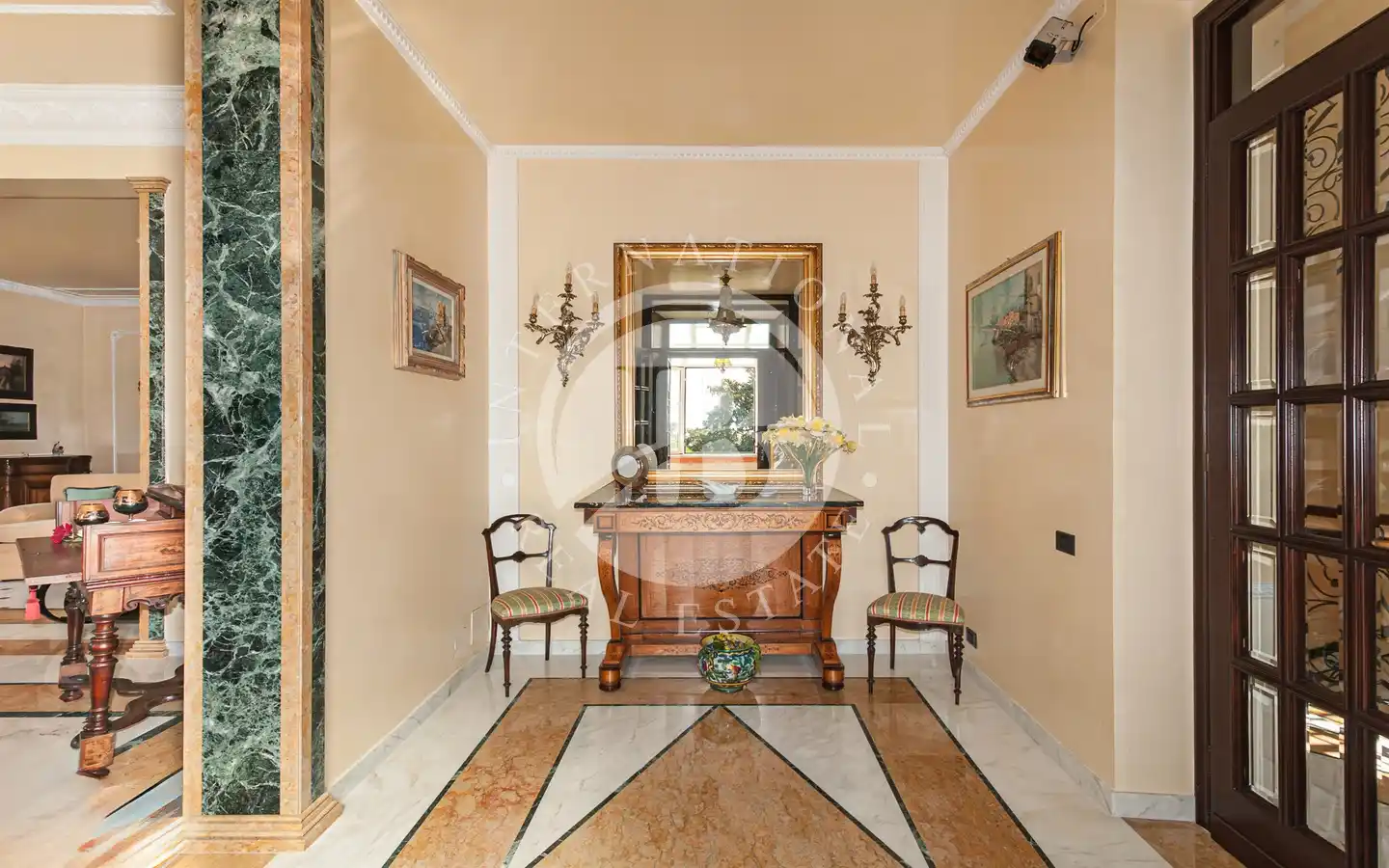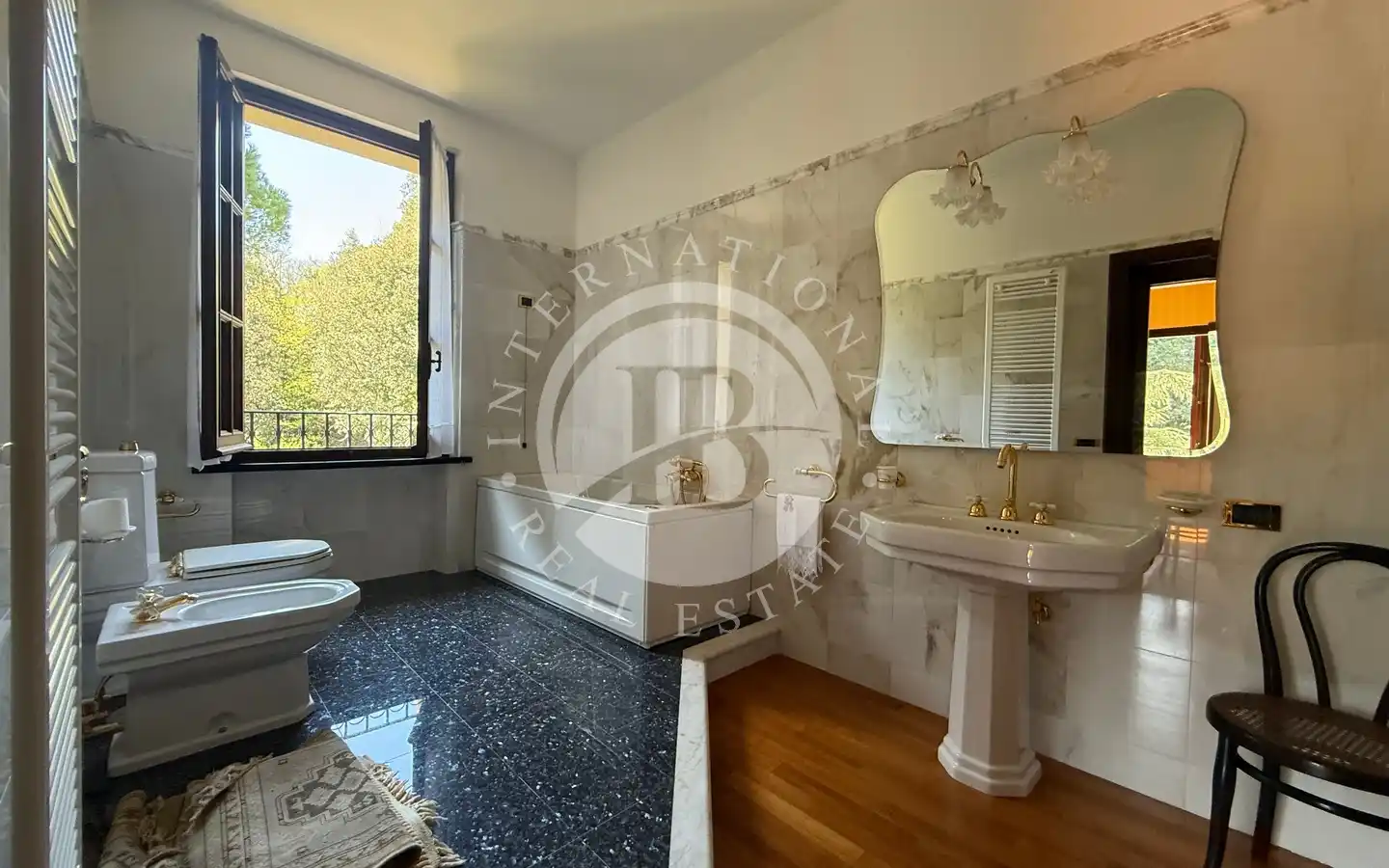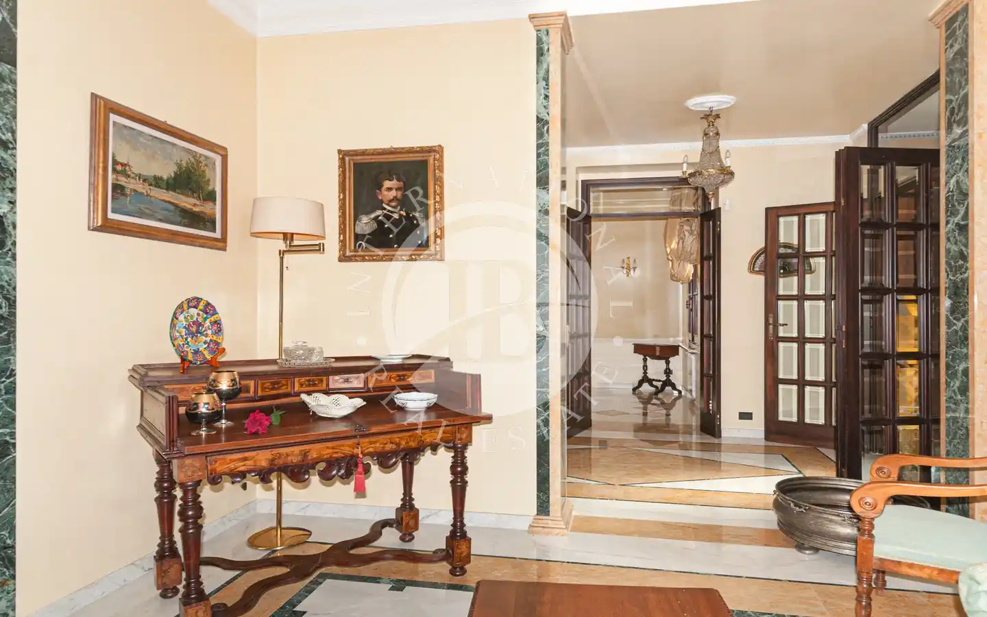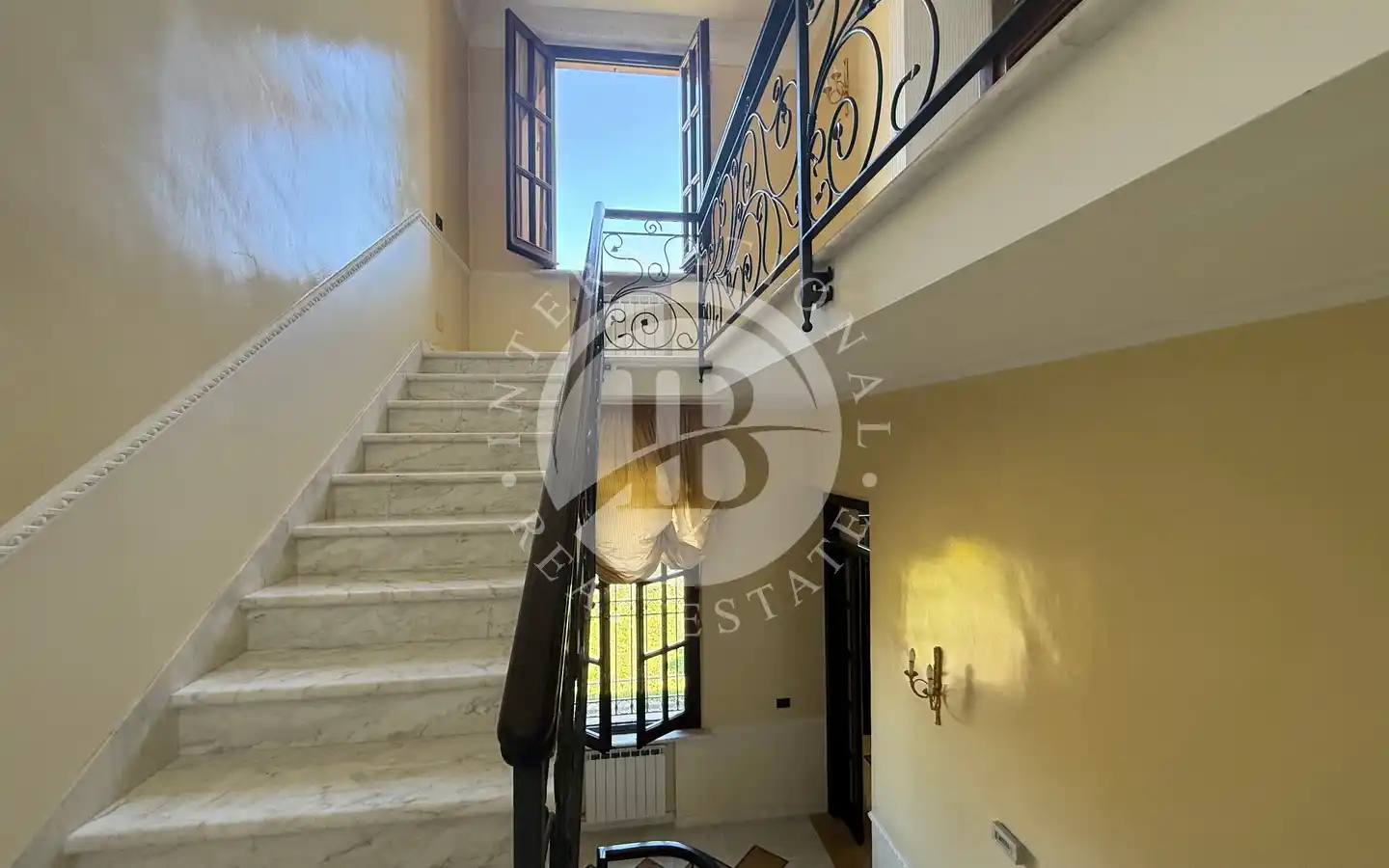 Al primo piano, collegato da una scenografica scala in marmo: tre camere matrimoniali di generosa metratura, una stanza guardaroba, e un ampio bagno con vasca, il tutto concepito per garantire comfort e raffinatezza in perfetta armonia con lo stile storico dell’immobile.
