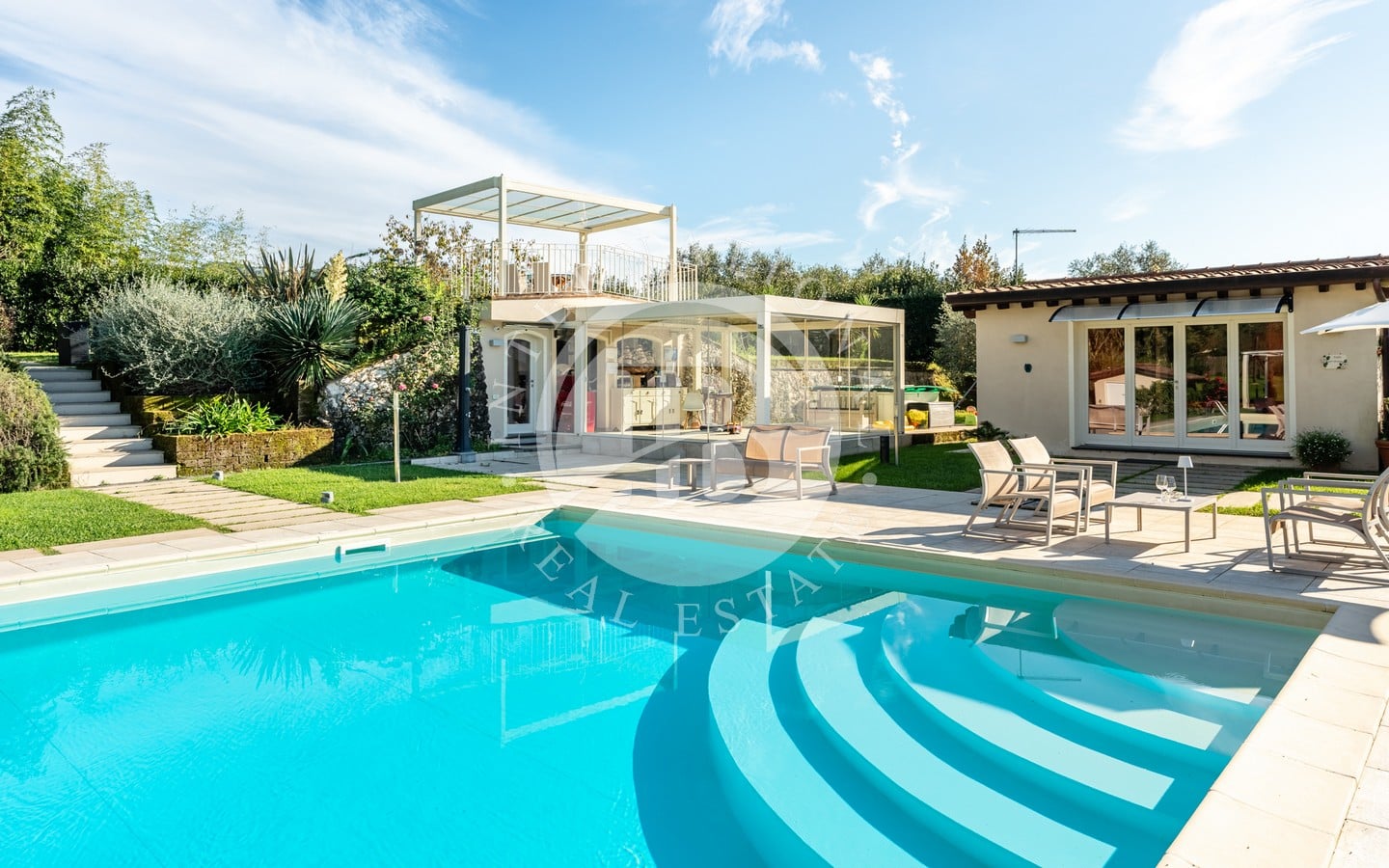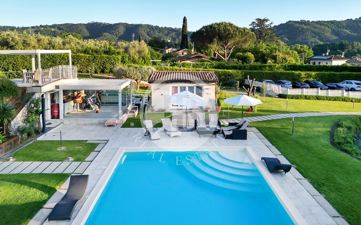 Immersa nel verde delle colline di Camaiore, a pochi minuti dalle spiagge della Versilia, questa magnifica villa di lusso si estende su 500 mq. Recentemente ristrutturata, la proprietà offre interni eleganti e ampi spazi esterni, tra cui un curato giardino di 5000 mq, una grande piscina, pergolati e una dependance. Un'oasi di tranquillità e privacy, ideale per chi desidera vivere in un ambiente esclusivo e raffinato. Gli interni della villa riflettono una perfetta armonia tra eleganza e comfort. L’ingresso accoglie con un’ampia sala d…