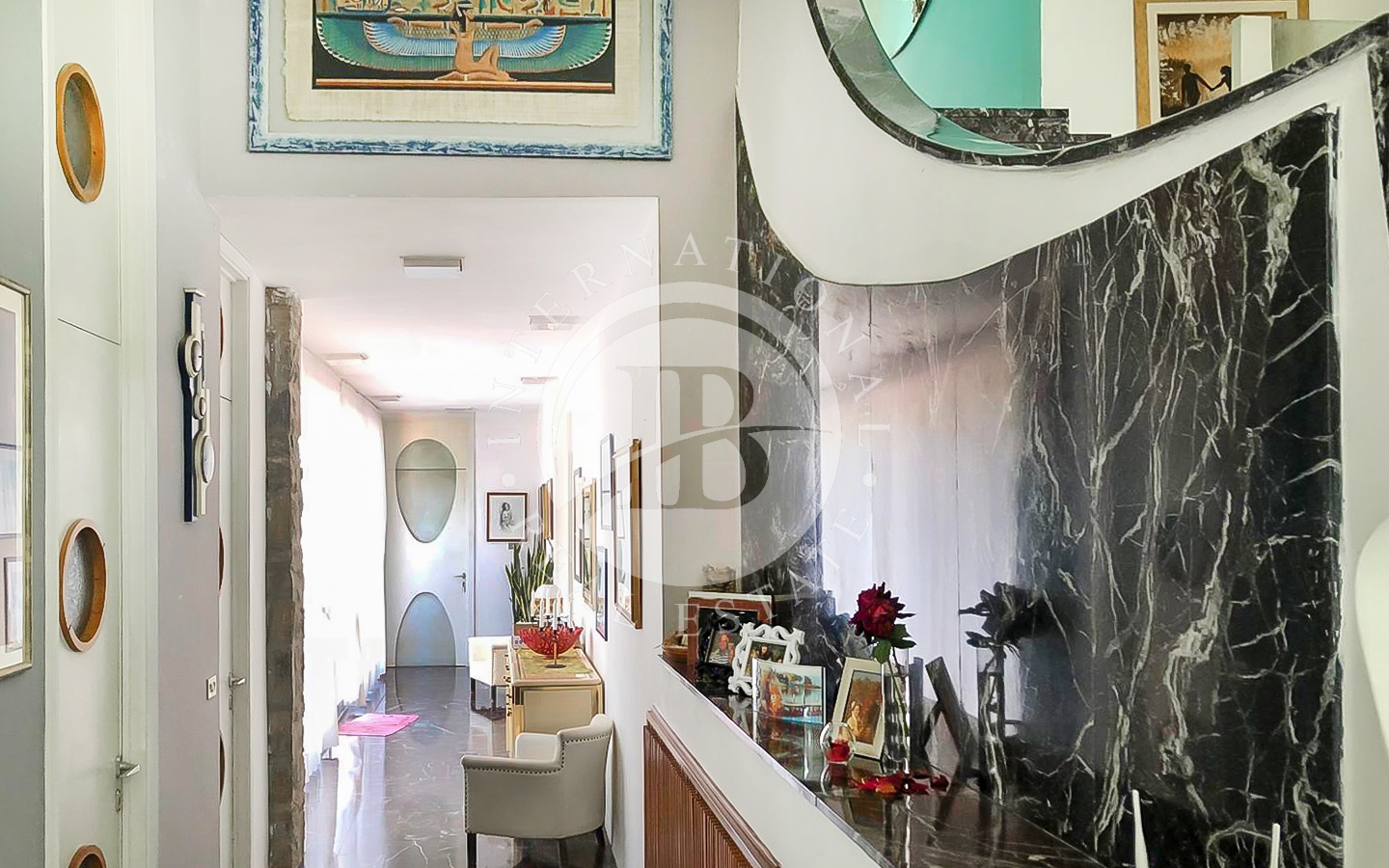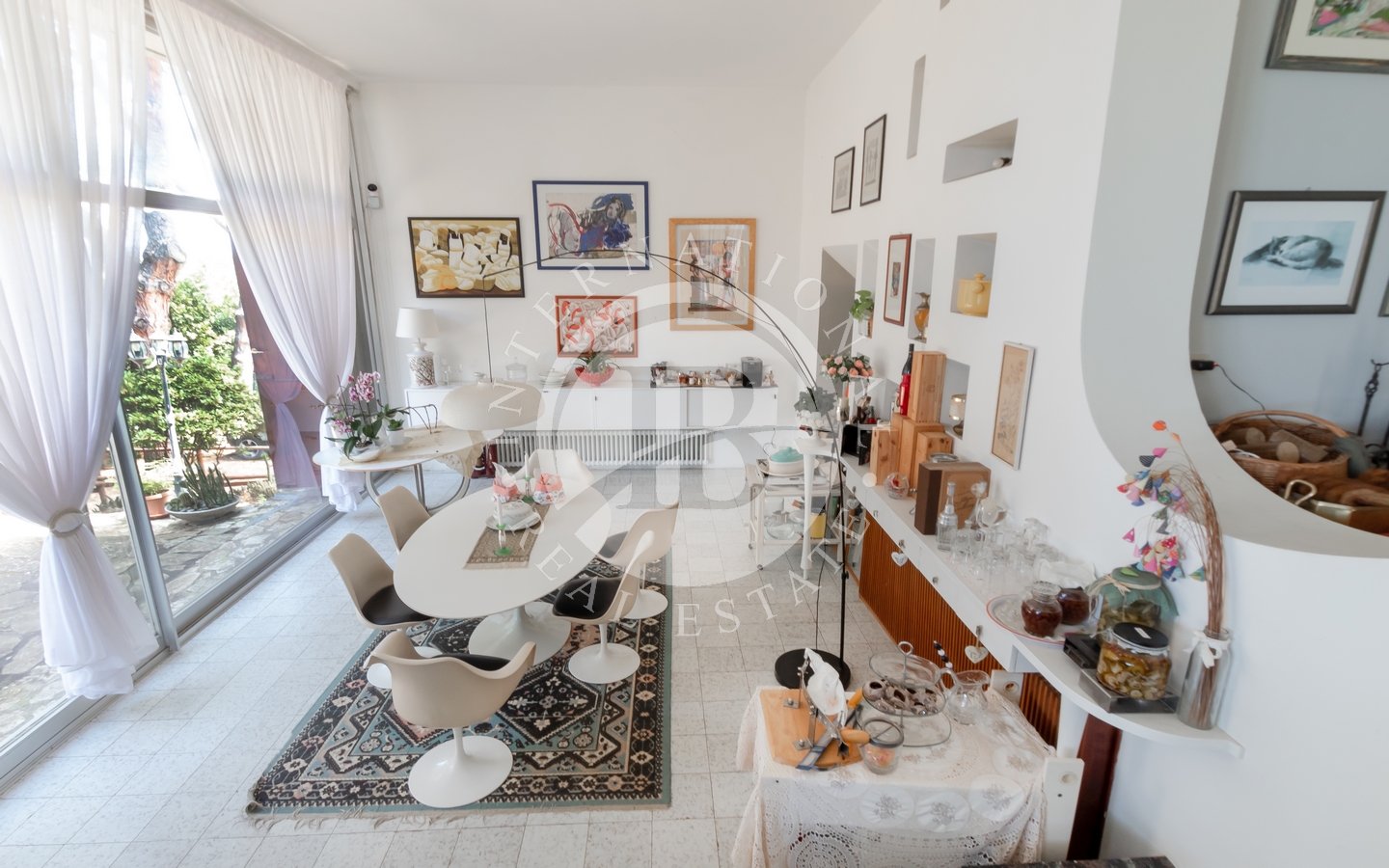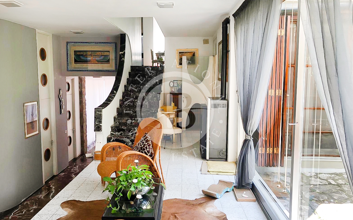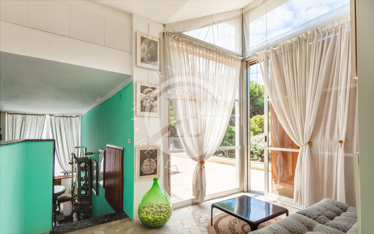 saggio circostante. Gli interni si caratterizzano per il particolare design e l'attenzione ai dettagli, con ampi spazi aperti e comunicanti che creano un'atmosfera ariosa e sofisticata. Le quattro camere, arredate con gusto e raffinatezza, offrono comfort e tranquillità.