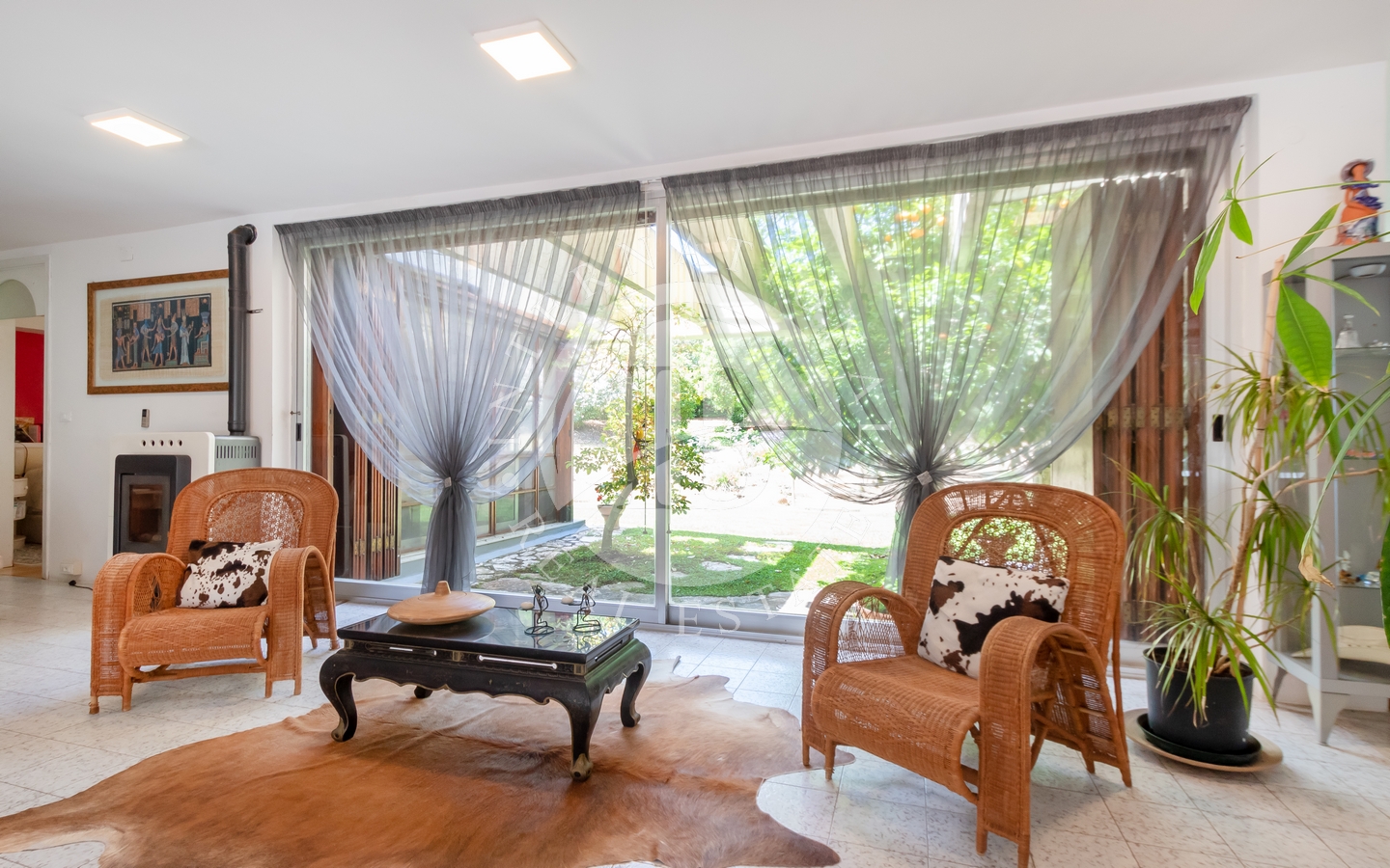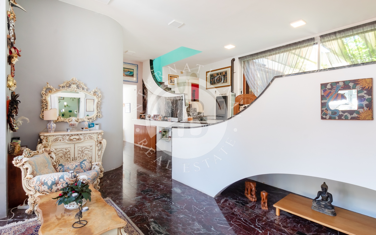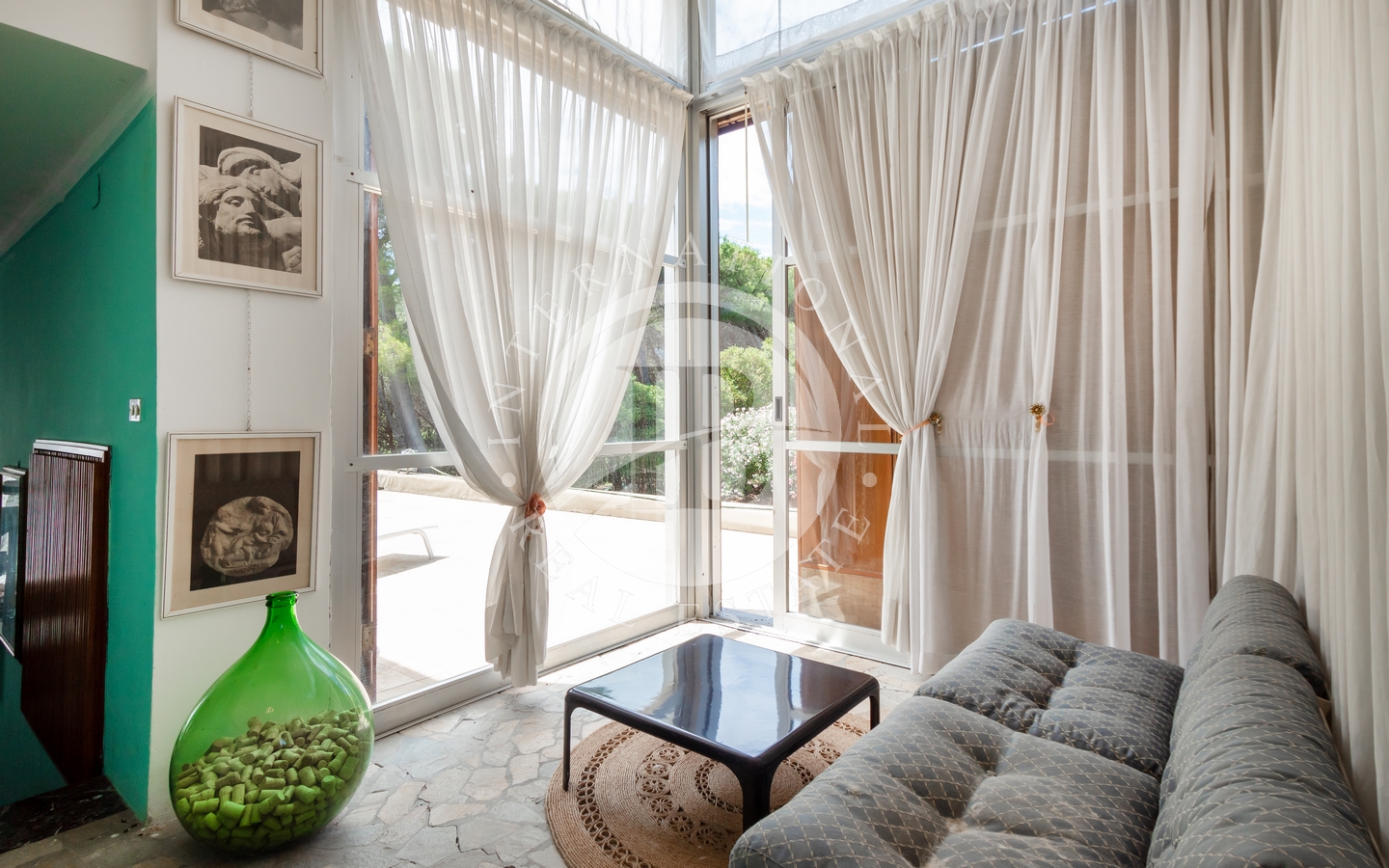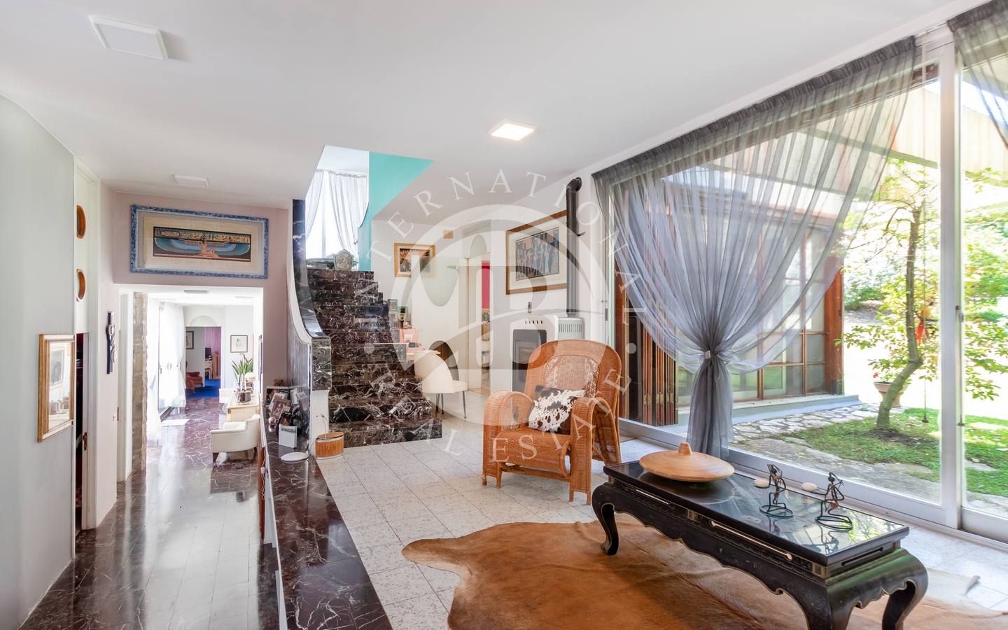 saggio circostante. Gli interni si caratterizzano per il particolare design e l'attenzione ai dettagli, con ampi spazi aperti e comunicanti che creano un'atmosfera ariosa e sofisticata. Le quattro camere, arredate con gusto e raffinatezza, offrono comfort e tranquillità.