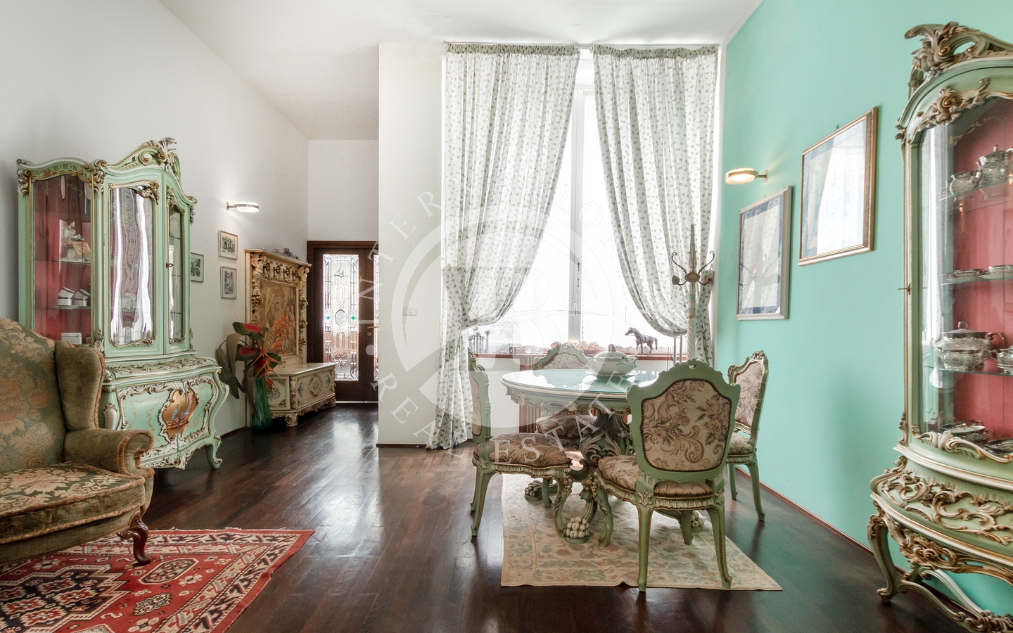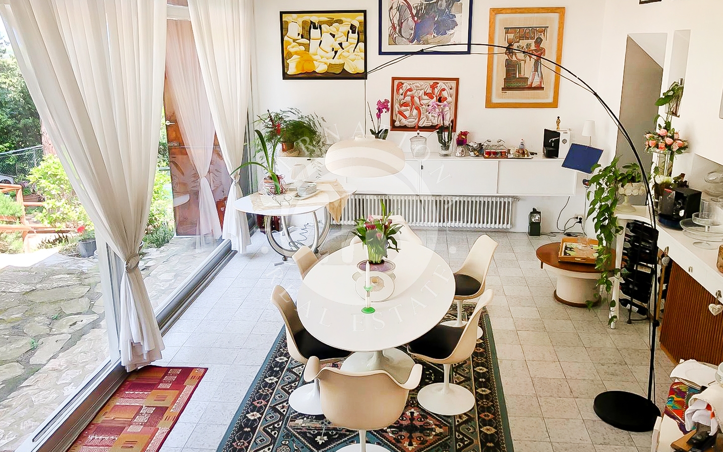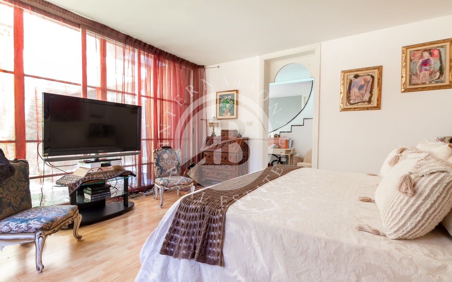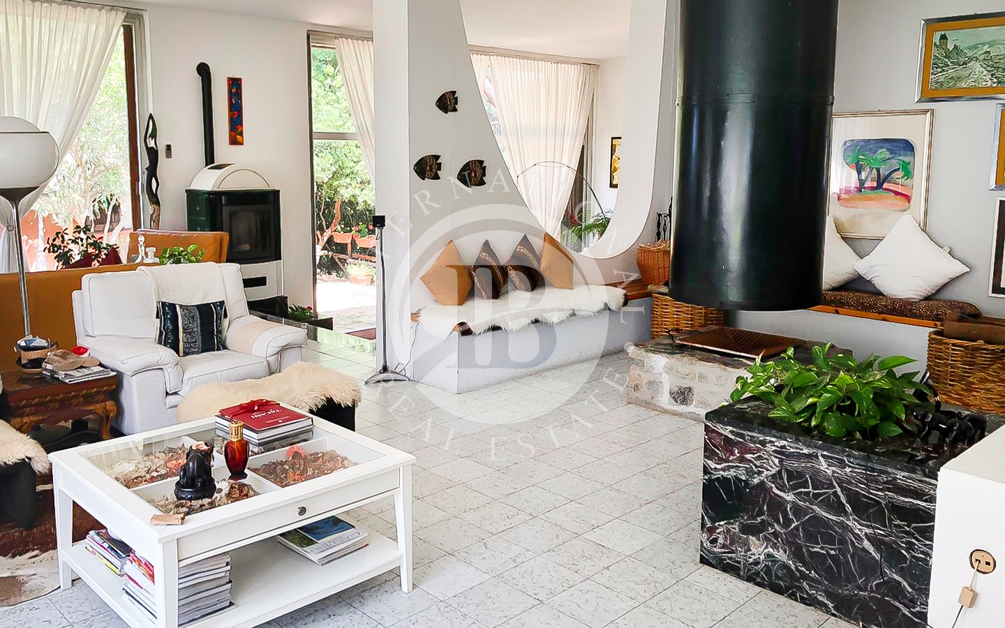 saggio circostante. Gli interni si caratterizzano per il particolare design e l'attenzione ai dettagli, con ampi spazi aperti e comunicanti che creano un'atmosfera ariosa e sofisticata. Le quattro camere, arredate con gusto e raffinatezza, offrono comfort e tranquillità.
