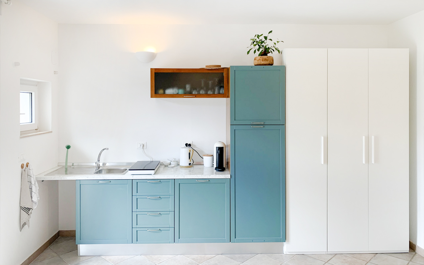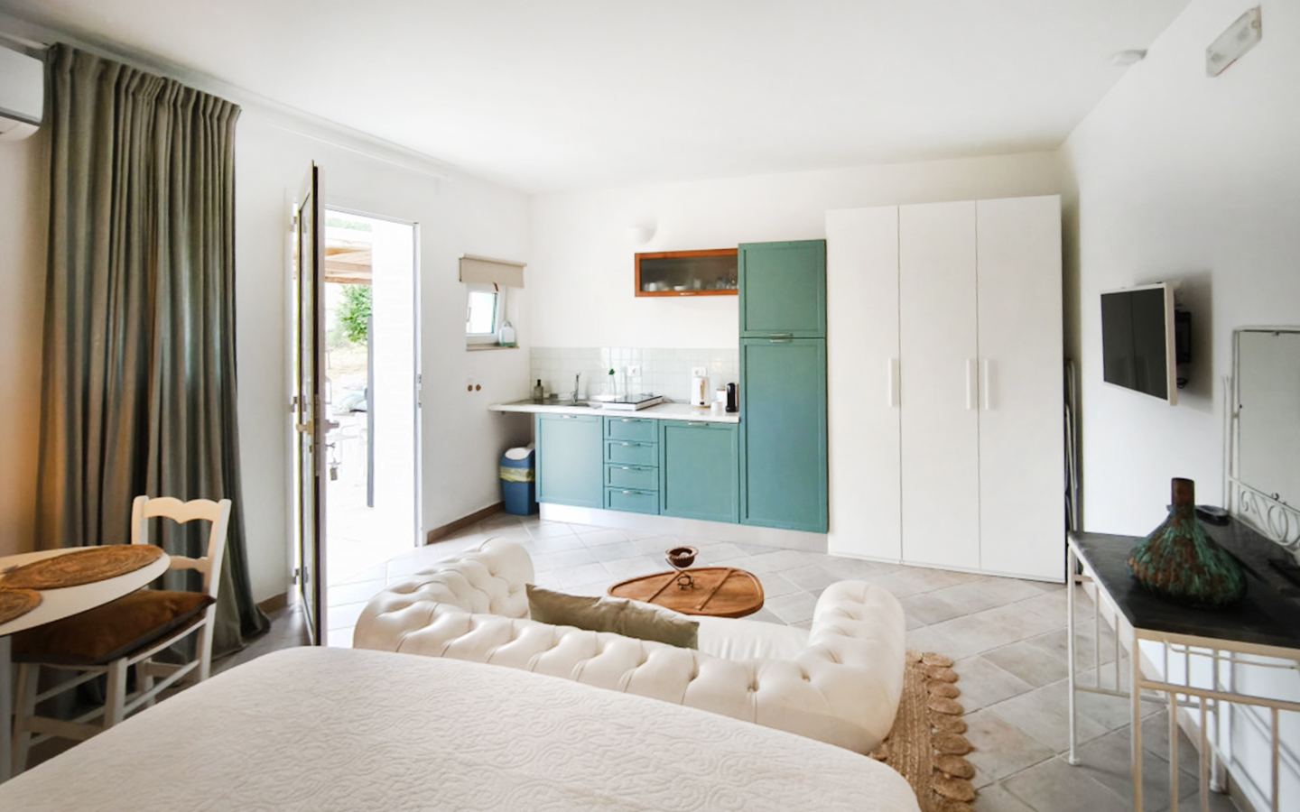 Il piano terra ospita due unità indipendenti attualmente destinate alla locazione turistica: un monolocale ideale per coppie e un appartamento più ampio, adatto fino a quattro persone, entrambi dotati di angolo cottura e ingresso riservato. All’esterno, una piscina di 85 metri quadrati con zona solarium completa un ambiente perfetto per il relax all’aperto.
