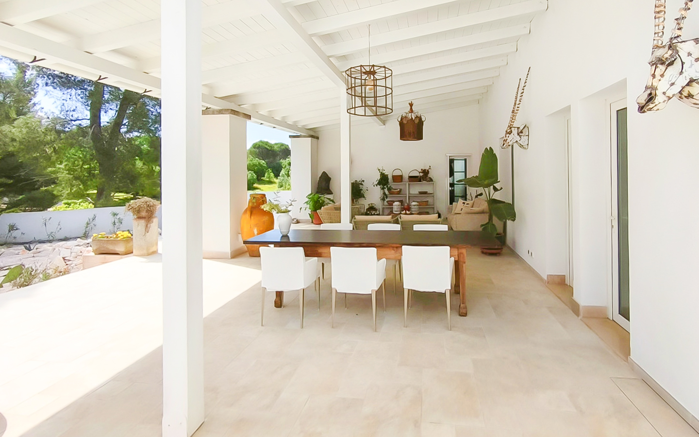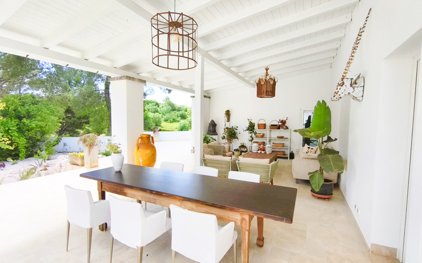 Un ampio garage, locali tecnici funzionali e la possibilità di acquisire separatamente un trullo completamente ristrutturato – composto da due camere, area giorno con cucina, doppi servizi e patio verandato – ampliano le potenzialità di questa proposta, sia come residenza privata che come struttura ricettiva. L’intera proprietà è circondata da muri di cinta e da un paesaggio naturale impreziosito da ulivi secolari e alberi da frutto, in un perfetto equilibrio tra autenticità e comfort.