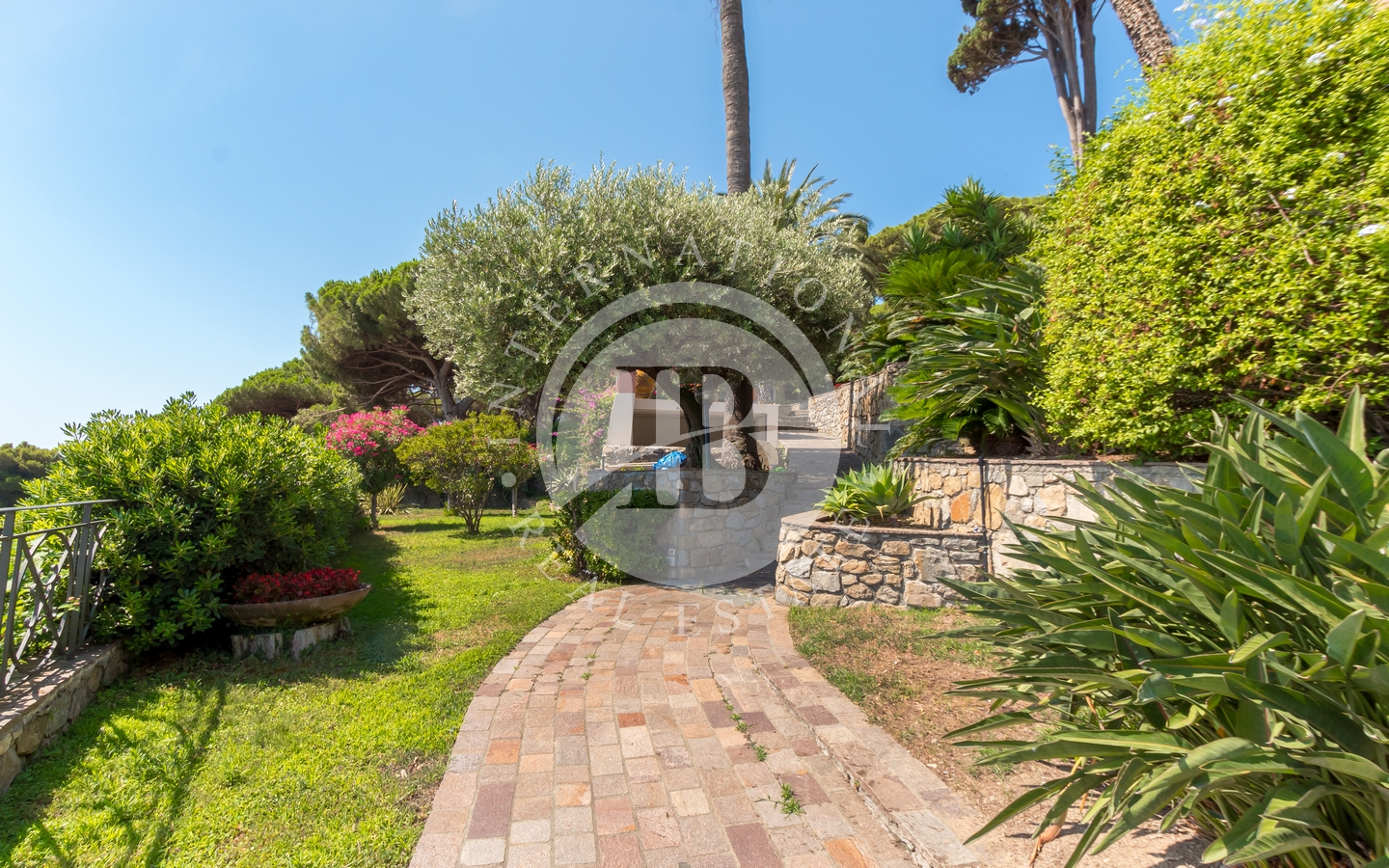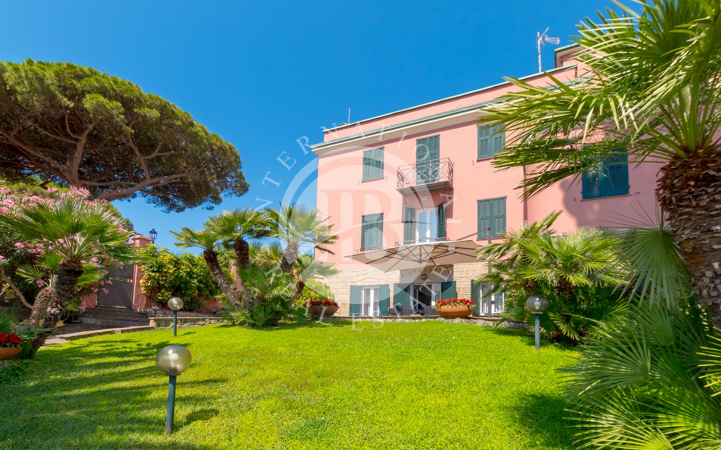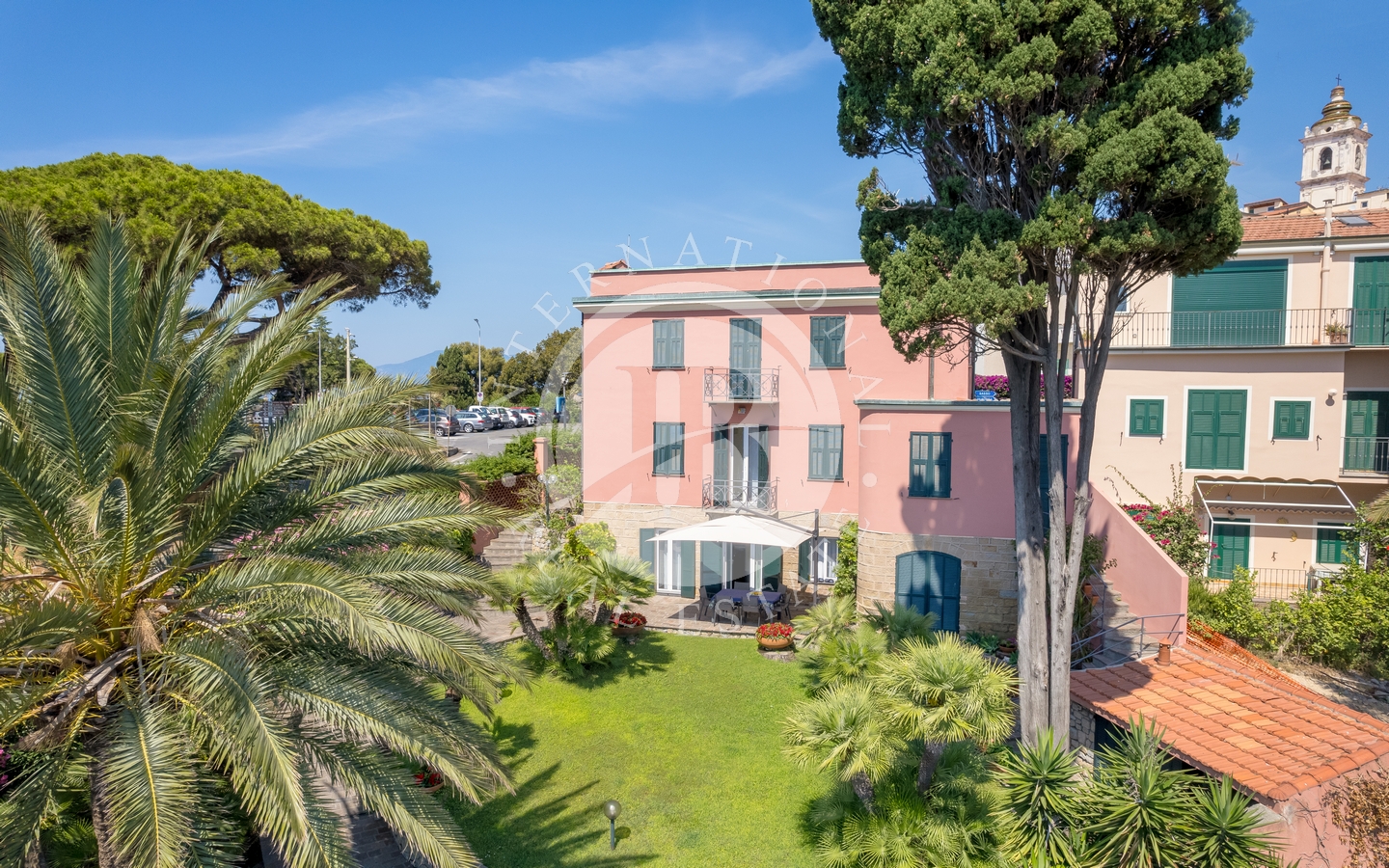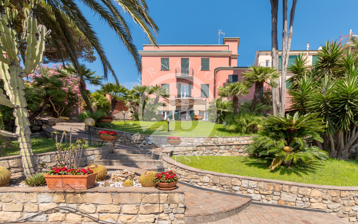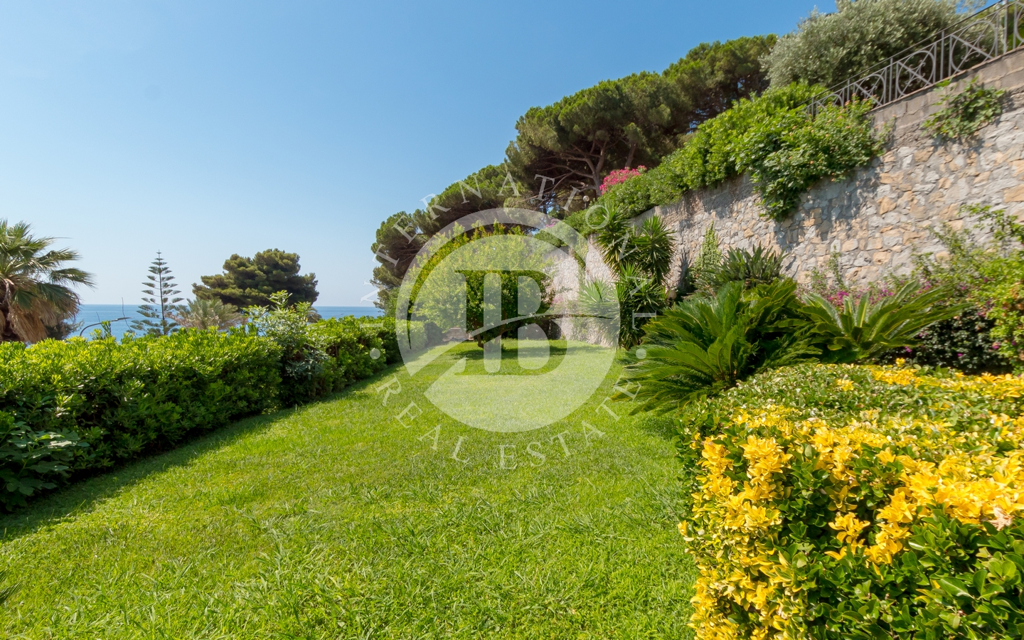 Elegante villa di circa 400 mq, situata nel cuore di Bordighera a pochi metri dal mare, immersa in un ampio giardino perfettamente curato, arricchito da piante di pregio che garantiscono riservatezza e tranquillità. All’interno del giardino si trova una piacevole e comoda zona pranzo esterna, ideale per momenti di convivialità, collegata direttamente al soggiorno, alla cucina e a un primo bagno di servizio. Al piano superiore la villa offre tre camere da letto, due bagni e piccoli poggioli con vista sul mare, regalando scorci suggesti…
