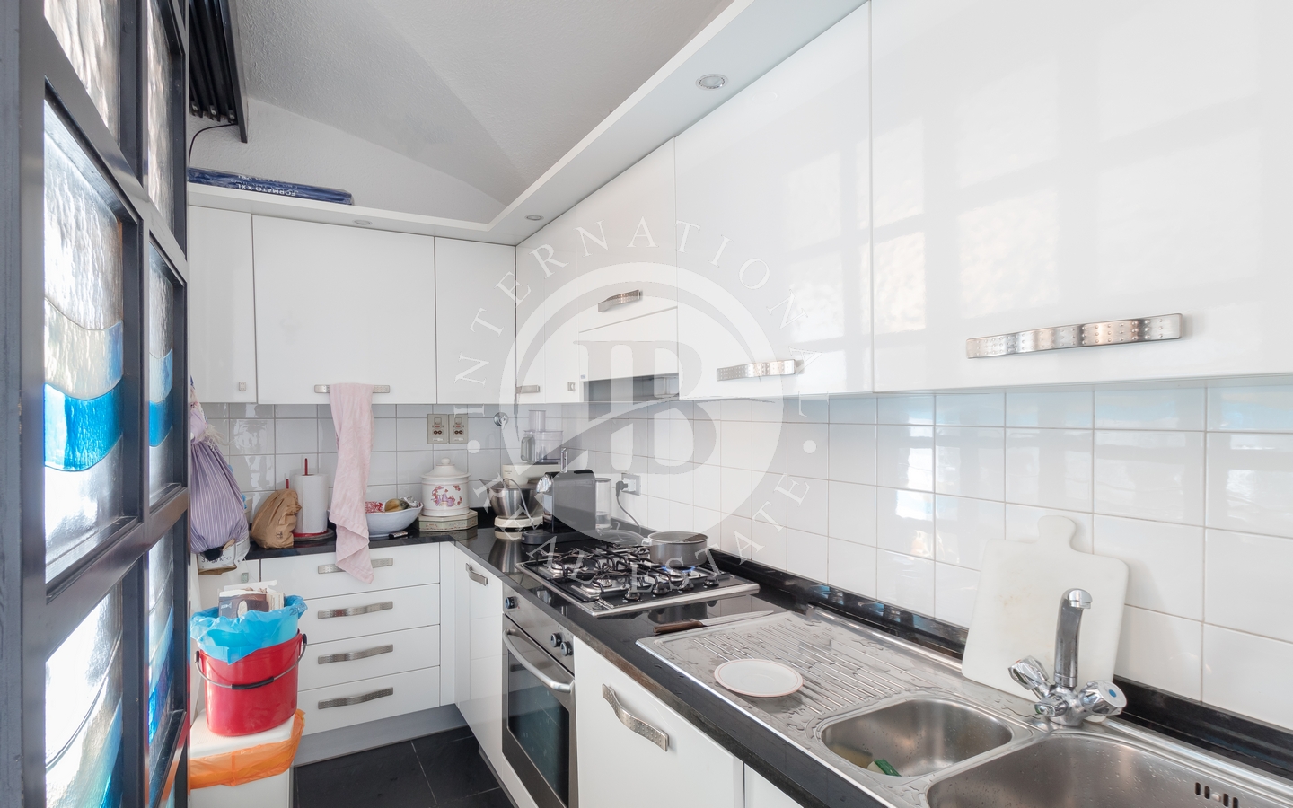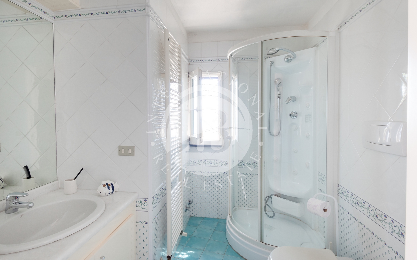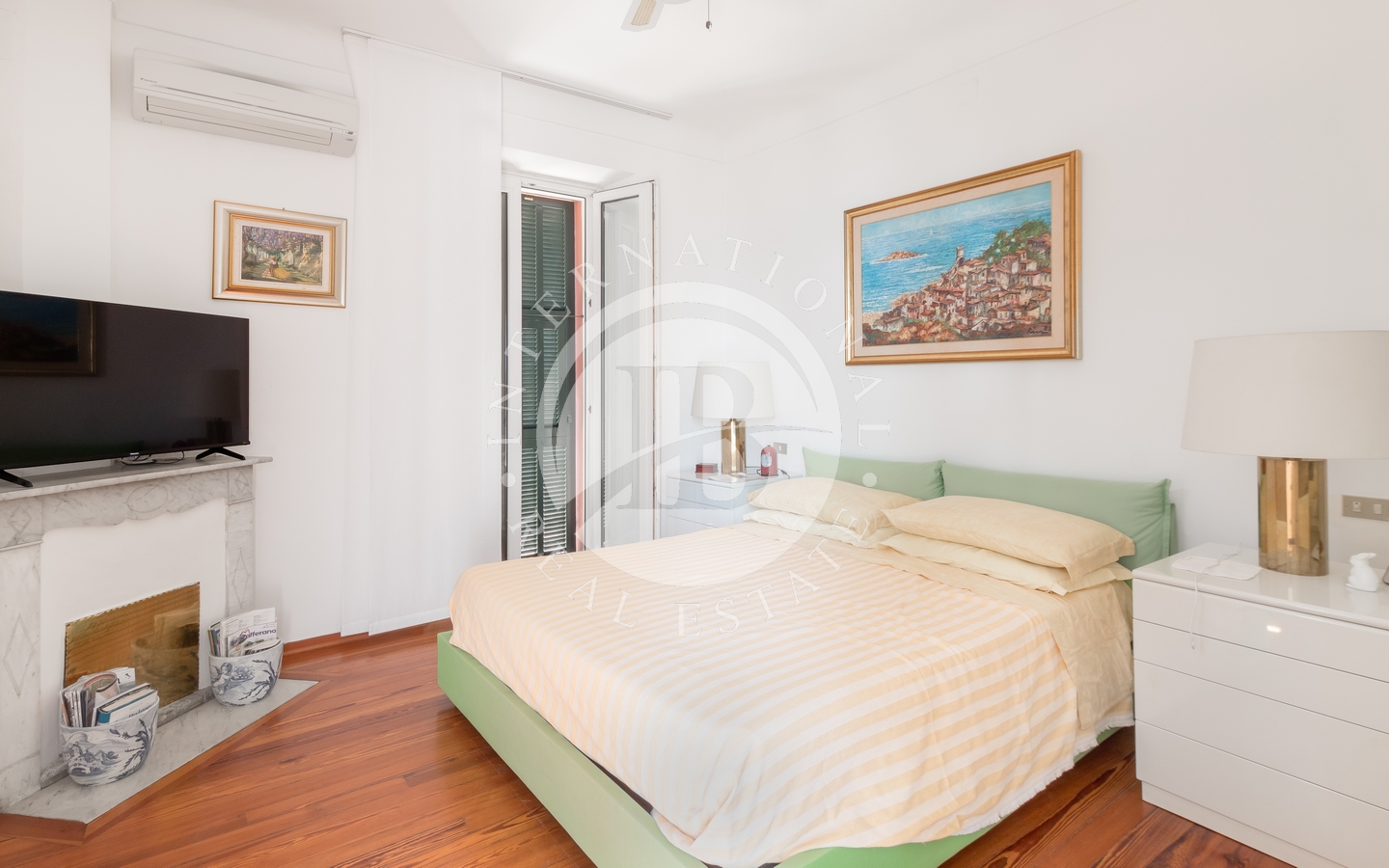 Attraverso un accesso indipendente si raggiunge il livello superiore, composto da un salotto, tre ulteriori camere, due bagni e una cucina. Da qui si accede al piano tetto, dove è possibile sviluppare un’area esterna panoramica, perfetta per godere appieno della vista sul mare e del clima mite della Riviera.