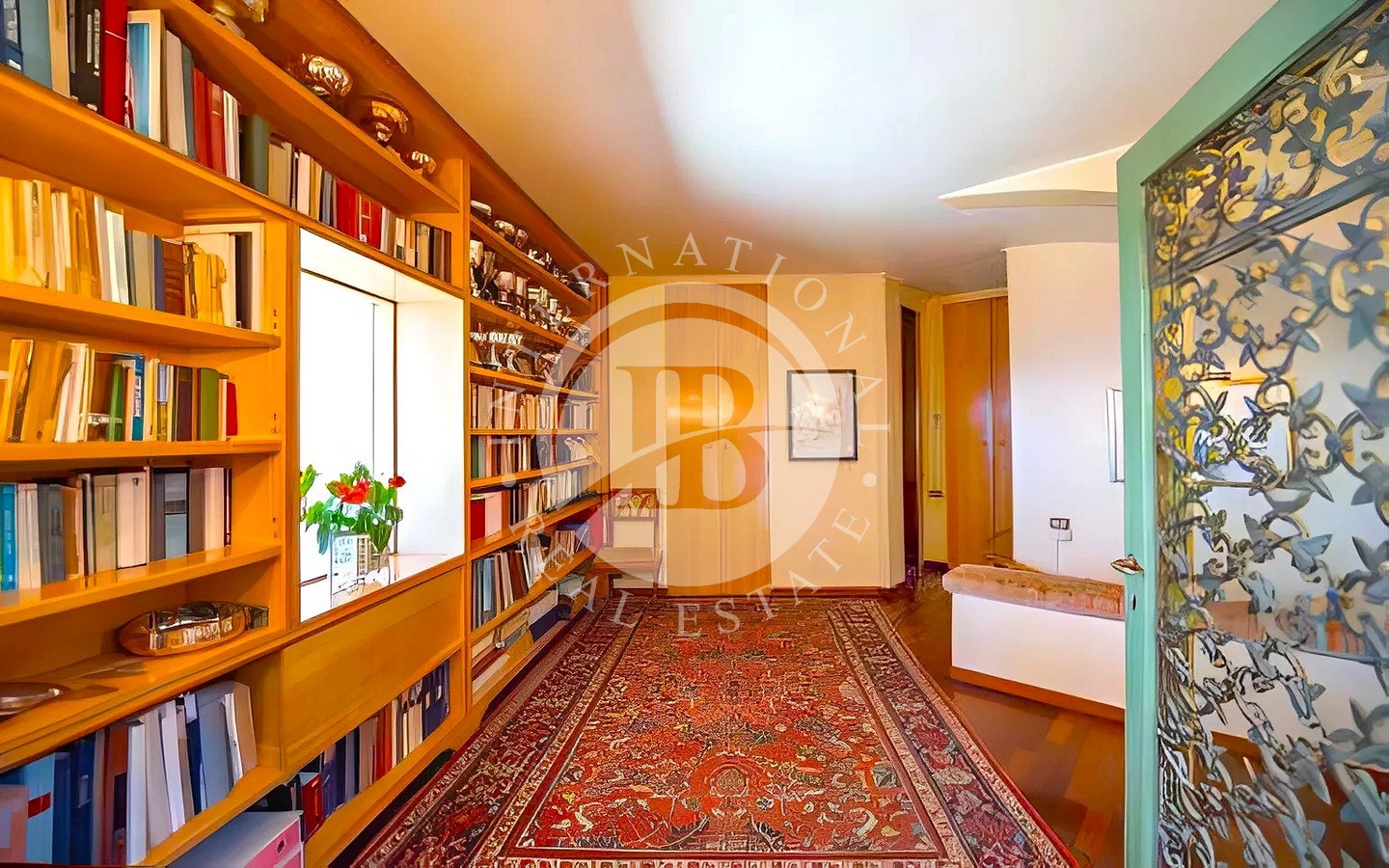 Tutti gli ambienti si affacciano sul giardino e godono di una vista aperta sul mare, creando una continuità naturale tra interno ed esterno. Una stanza multifunzionale con bagno, attualmente destinata al personale, collega direttamente al garage.