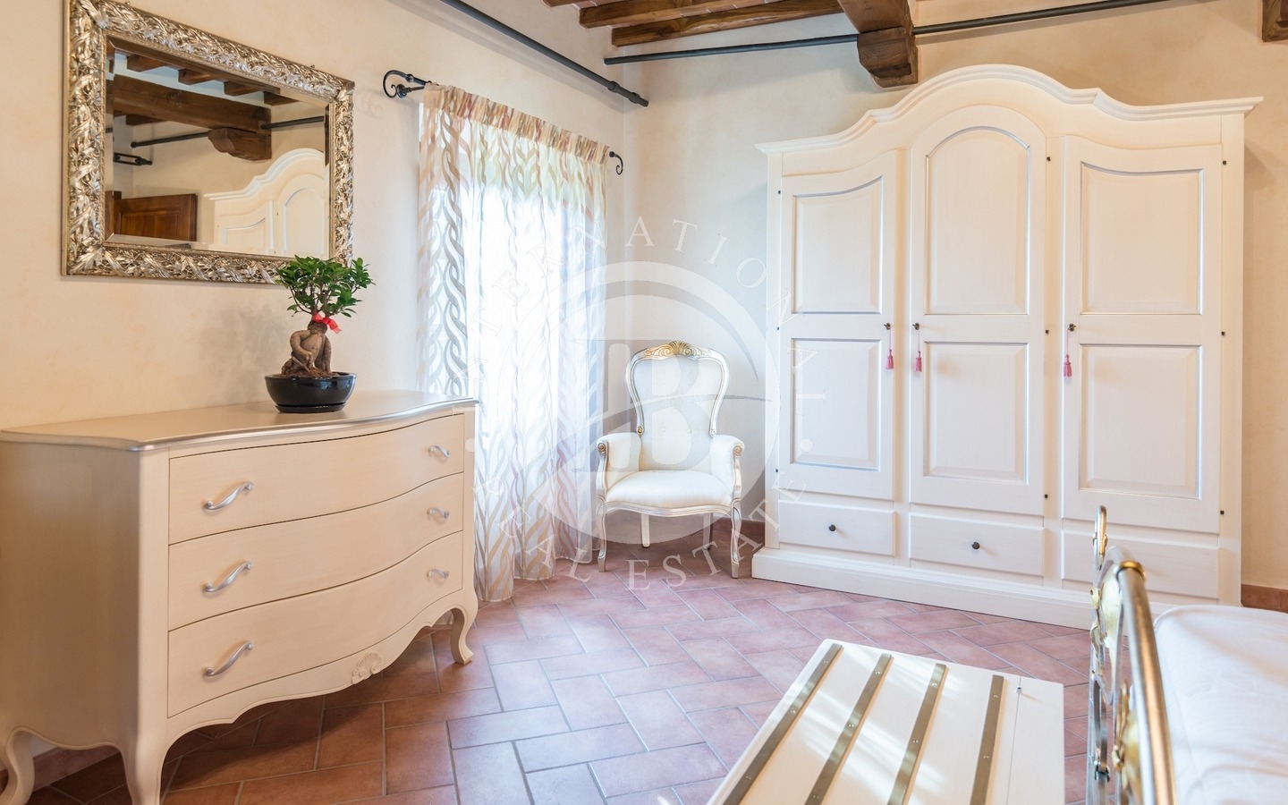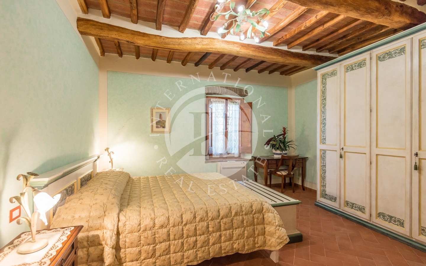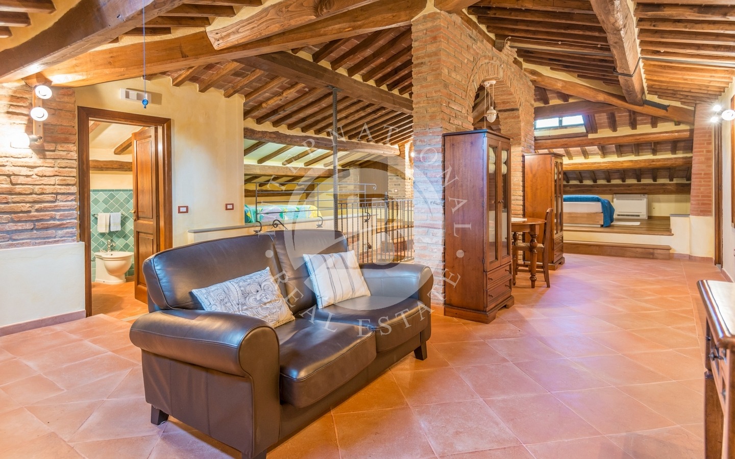 A completamento della proprietà l’ampia zona parcheggi, il grande giardino, il terreno di 32 ettari piantumato in parte a oliveto in parte boschivo, una fantastica piscina in posizione panoramica sul borgo di San Miniato e una dependance di c.a 600 mq da ristrutturare.