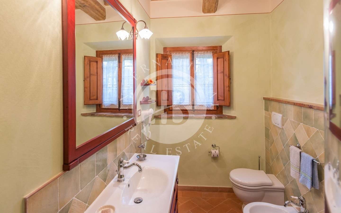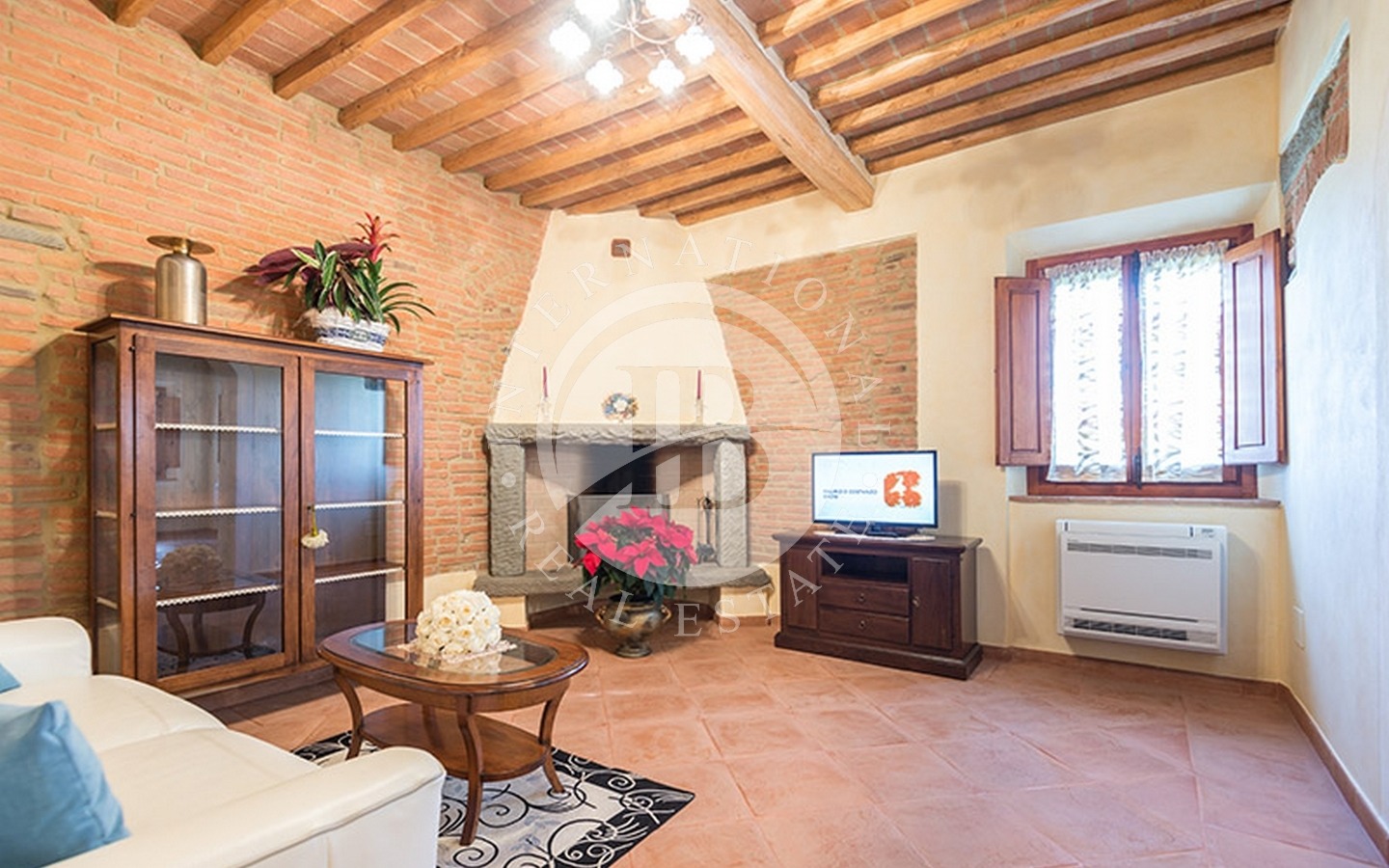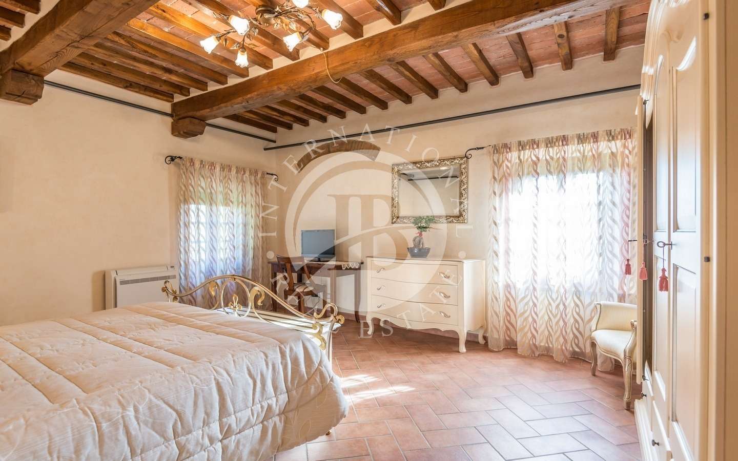 A completamento della proprietà l’ampia zona parcheggi, il grande giardino, il terreno di 32 ettari piantumato in parte a oliveto in parte boschivo, una fantastica piscina in posizione panoramica sul borgo di San Miniato e una dependance di c.a 600 mq da ristrutturare.