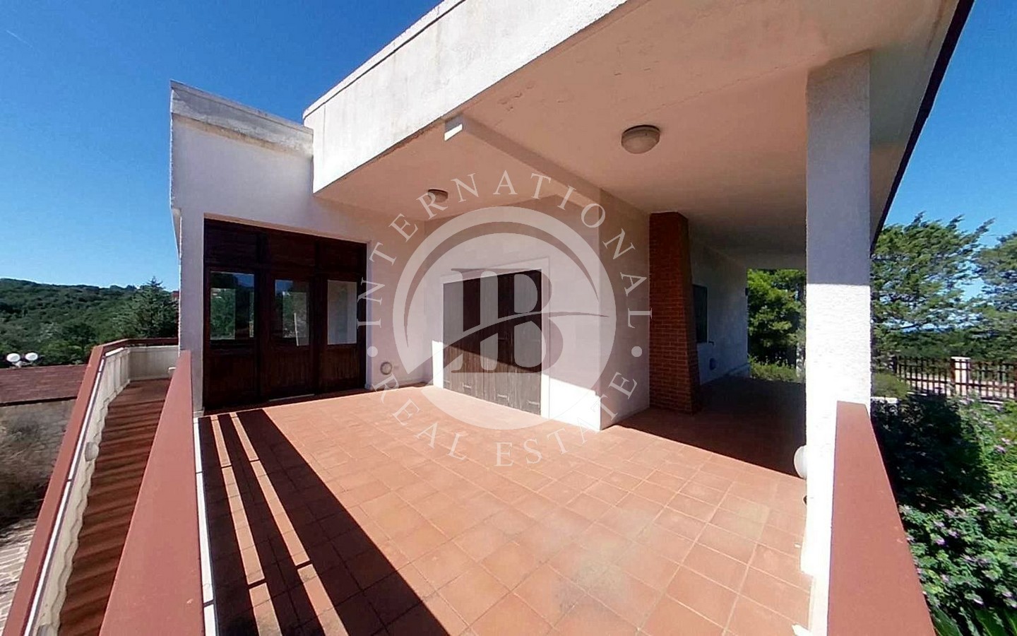 Edificata in posizione irripetibile con ampie visuali sul mare e sulla natura, questa villa indipendente su due livelli offre spazi abitativi eleganti e confortevoli, immersi in un ambiente di rara bellezza. La proprietà è disposta su due livelli, offre spazi abitativi accoglienti e raffinati, perfetti per chi cerca un rifugio esclusivo. Al piano primo, la villa accoglie con un ampio spazio verandato panoramico che conduce all'abitazione principale, composta da due camere da letto, una spaziosa cucina, un bagno e una grande sala/soggi…