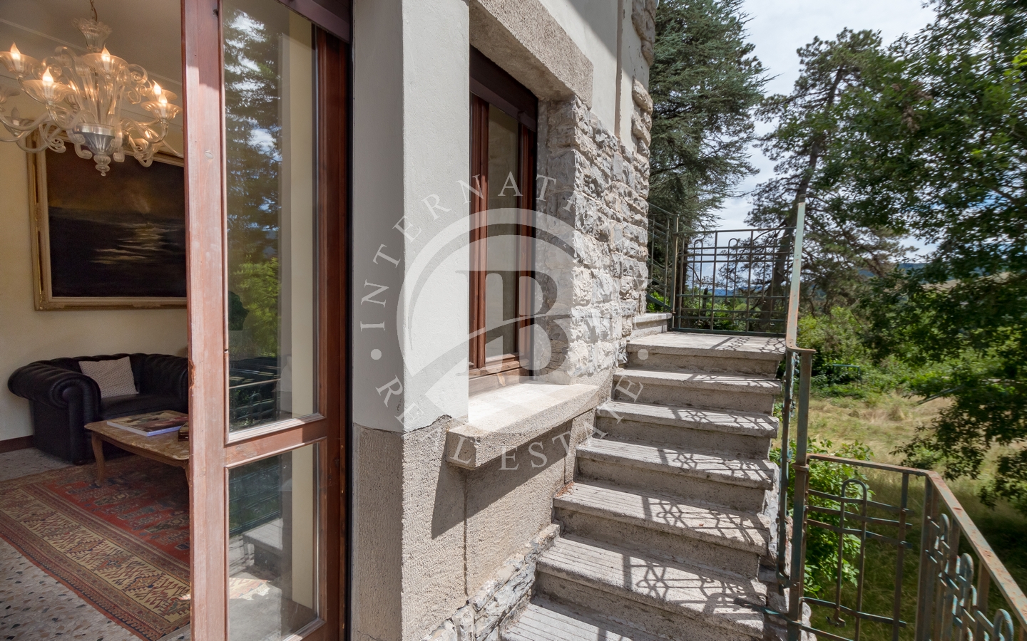 La proprietà è completamente recintata con eleganti muretti in pietra a vista arricchiti da fioriere, e offre spazi esterni di grande vivibilità, ideali per accogliere ospiti o semplicemente godere della quiete e della bellezza del paesaggio circostante. Un'opportunità irripetibile per amanti dell’architettura storica e del fascino intramontabile del Liberty.