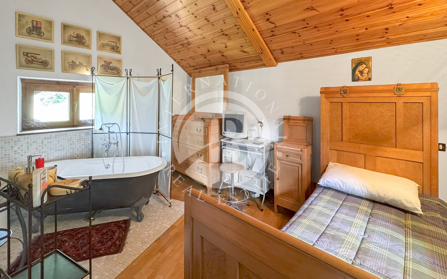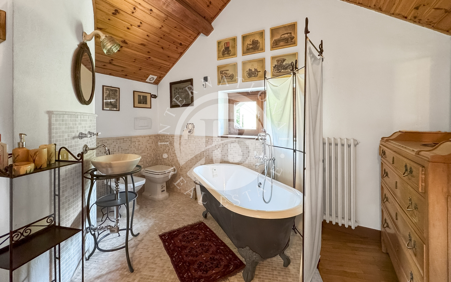 Al primo piano si sviluppa la zona notte principale, con due camere matrimoniali, un bagno e un terrazzo panoramico coperto da pergolato. Il piano mansardato, infine, accoglie una camera molto originale con bagno privato e accesso al sottotetto-ripostiglio.