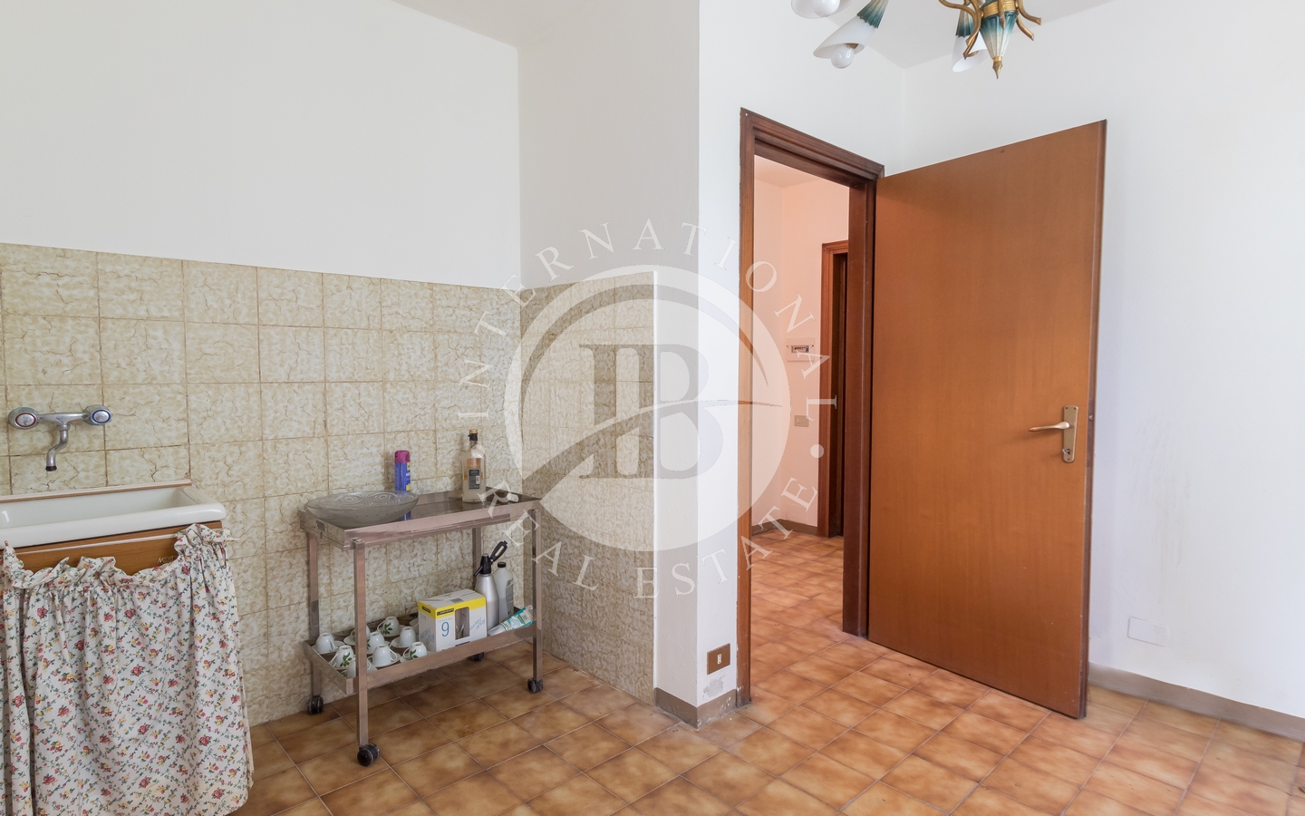 Al piano terra, con affaccio diretto sul giardino, si trova un appartamento indipendente composto da soggiorno-taverna, cucina, due camere da letto, due bagni, ingresso e ripostiglio-caveau. Questo livello è ideale come dependance per ospiti o familiari e include anche un corpo accessorio con porticato, due locali di servizio e area coperta per due posti auto.