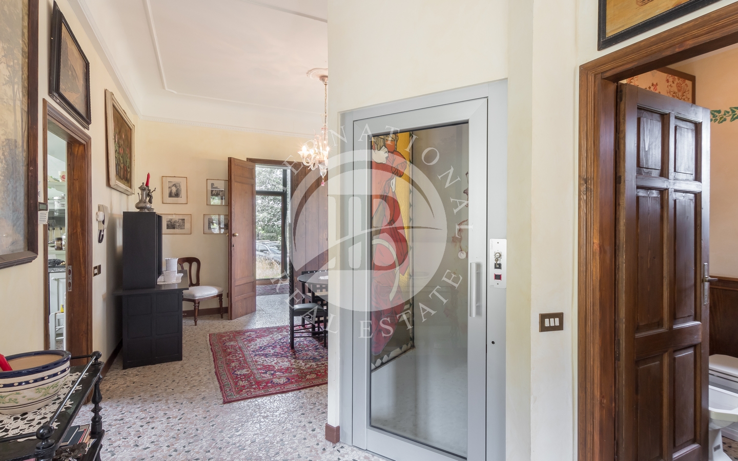 La villa si sviluppa su quattro livelli collegati internamente da un moderno domuslift e ha beneficiato di due ristrutturazioni, la più recente delle quali ha interessato impianti, pavimentazioni, finiture interne e tinteggiature, mantenendo intatto il fascino storico.
