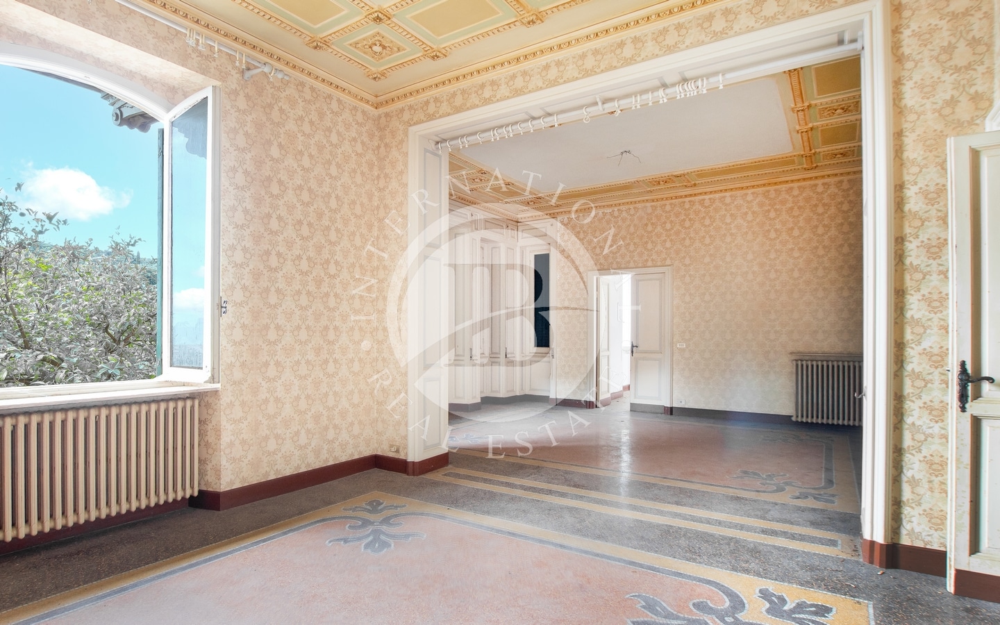 Qui si trovano tre spaziosi saloni con splendidi dettagli architettonici, soffitti decorati e pavimenti in mosaico, tutti con vista sul Golfo, oltre a uno studio, una cucina e un bagno.