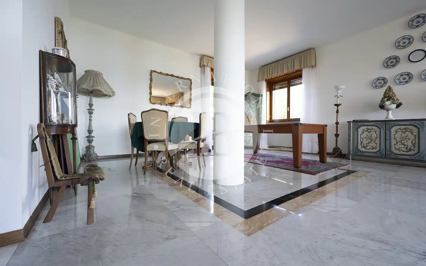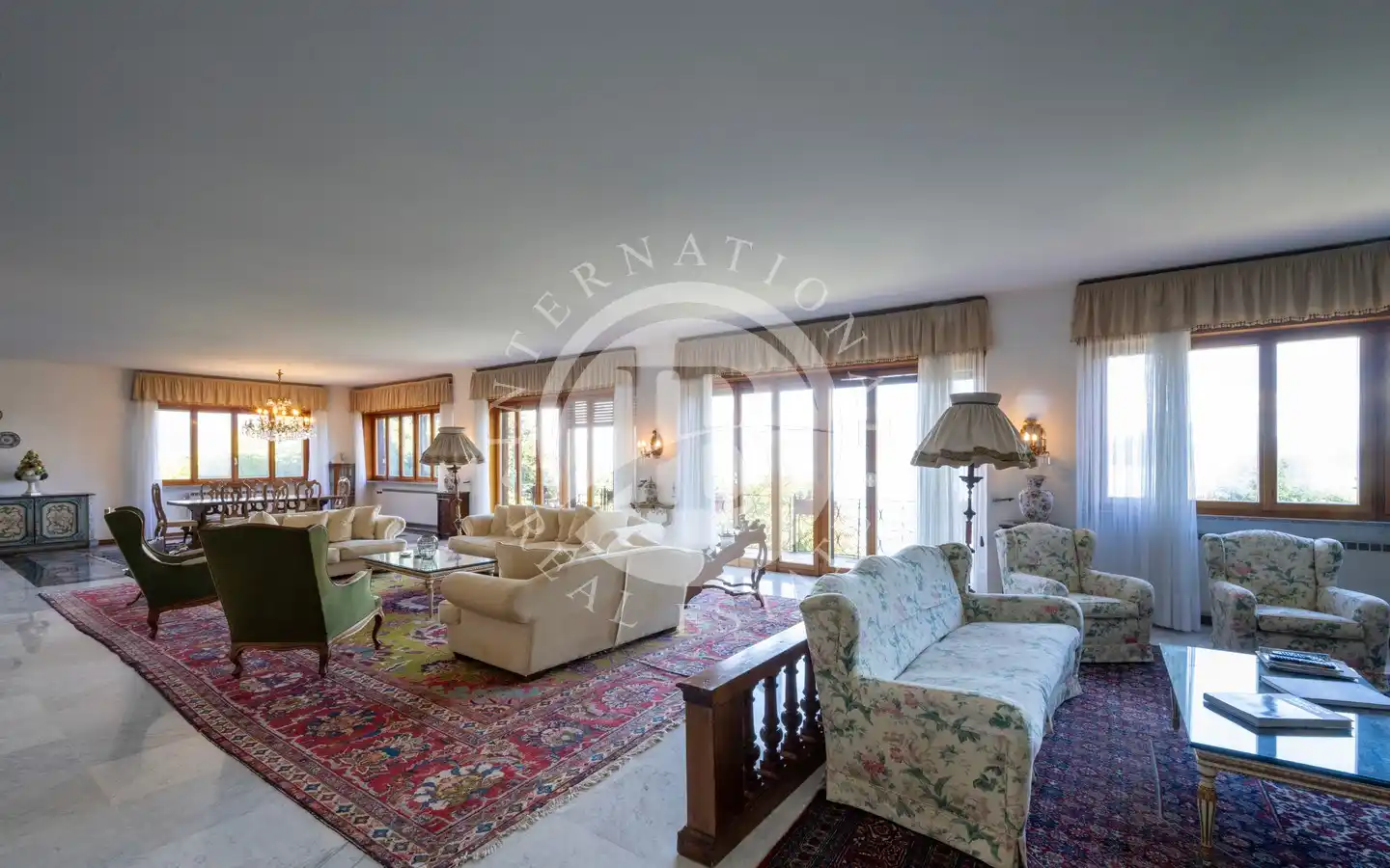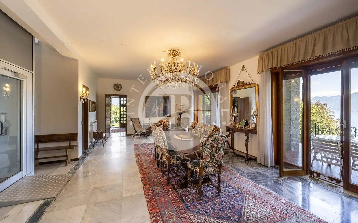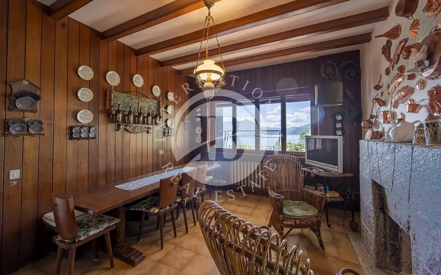 Costruita negli anni ’60 e riqualificata nel 1983, la villa si sviluppa su quattro livelli armoniosamente collegati. Al piano giardino si trovano l’ingresso, la sala da pranzo, la cucina, una camera, due bagni e i locali di servizio; da qui si accede a un ampio terrazzo porticato affacciato sul lago, perfetto per vivere all’aperto in ogni stagione. Il primo piano ospita un grande soggiorno open space di oltre 200 metri quadrati, caratterizzato da ampie vetrate e da un balcone panoramico che regala una vista spettacolare sul Lago Maggiore. Al secondo piano si sviluppa la zona notte, composta da cinque camere da letto e cinque bagni, mentre il terzo piano accoglie un’ampia terrazza di copertura completamente fruibile, con un piccolo fabbricato accessorio dotato di guardaroba e bagno, ideale come area relax o spazio per gli ospiti.