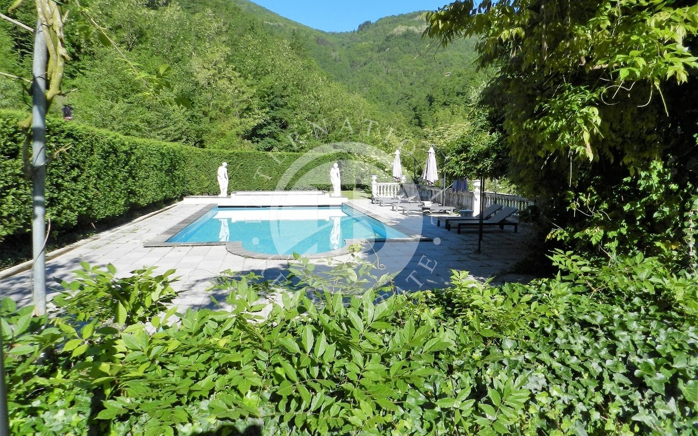 Nel nord della Toscana, nella valle della Garfagnana, è in vendita una villa su una proprietà di 150 ettari. La tenuta include una struttura principale di 500 anni costruita su rovine romane, con un lussuoso soggiorno, soffitto in vetro e arredi antichi. La villa ha 3 piani ed è ben illuminata dal sole. Un edificio adiacente, risalente a 350 anni fa, offre 6 camere con ingresso indipendente e bagni lussuosi. La Lemon House, vicina alla grande piscina, ha una camera da letto e bagno elegante, con la possibilità di costruire un piano ag…