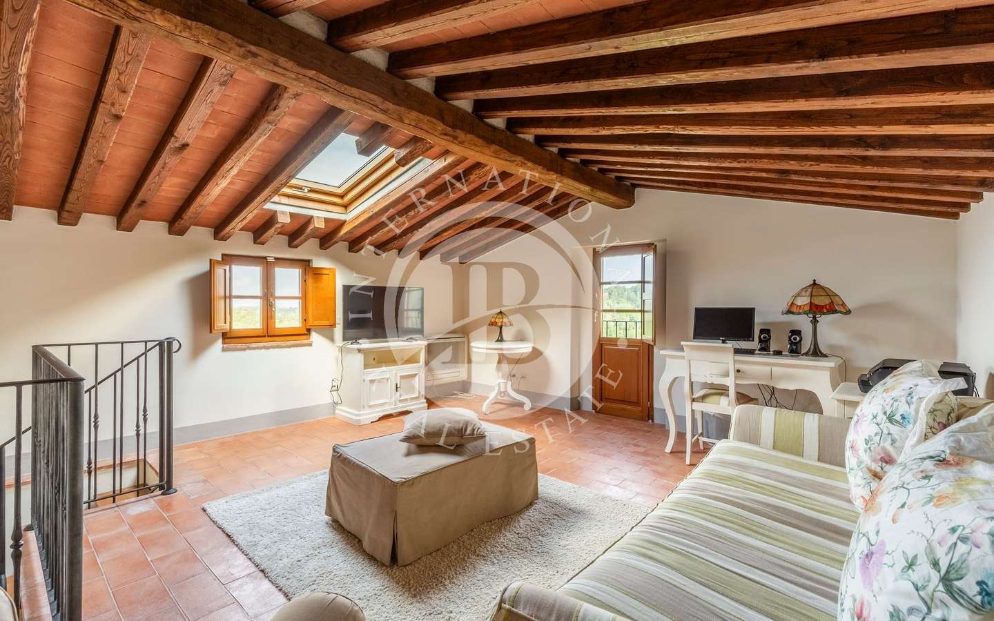 Tra le verdi e suggestive colline toscane, a metà strada tra il borgo di origine etrusca di Palaia e la cittadina medioevale di San Gimignano, proponiamo la vendita di questa elegante dimora di campagna meticolosamente ristrutturata nel 2013 con l’utilizzo di materiali e finiture di assoluta qualità. Un breve tratto di strada bianca ci conduce alla proprietà; meravigliosa la posizione panoramica con vista sulle colline e stupenda l'esposizione a sud/ovest con un tramonto che illumina la facciata principale e una terrazza di quasi 90 m…