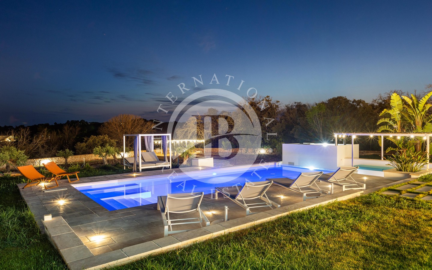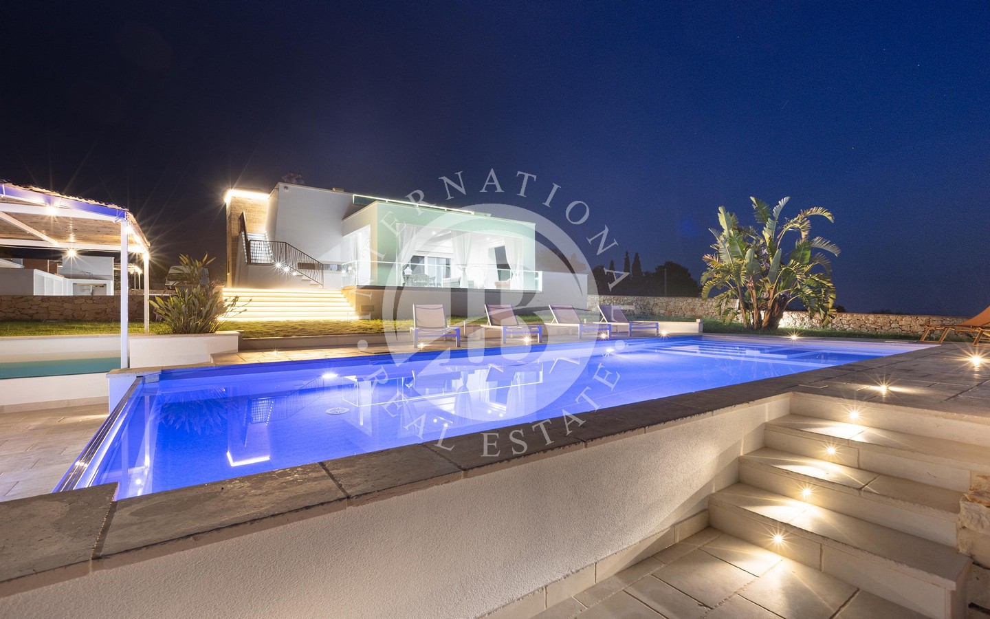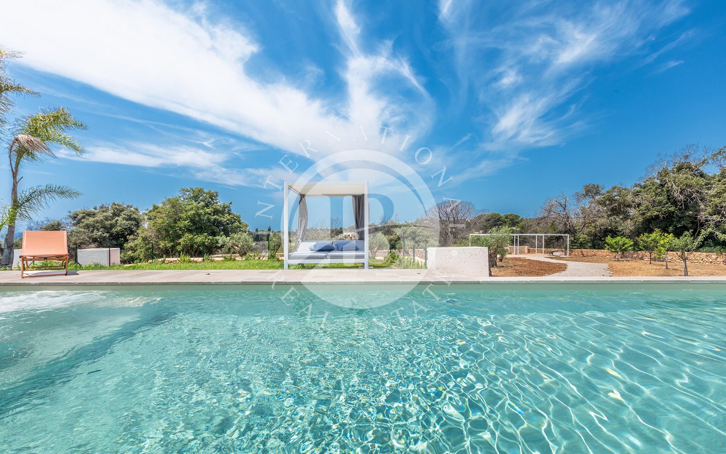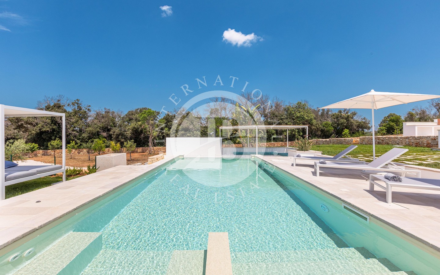 Esternamente, un Pergolato Antistante di 30 mq, ti permetterà di rilassarti trascorrendo le calde giornate salentine, affacciato su una Splendida Piscina di 40 mq posta frontalmente e, come sfondo, il Mare.