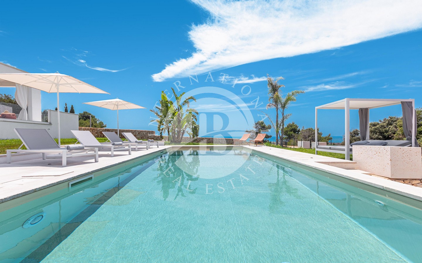 Prestigiosa Villa Vista Mare di 110 mq coperti, con Piscina, Giardino, Pergolato Antistante e, una privacy assoluta! La Prestigiosa Villa, in fase di completamento, si sviluppa interamente al piano terra e si compone di Soggiorno con Camino, Cucina, Dispensa, 3 Camere da Letto e, 2 Bagni. Sia il Soggiorno che le Camere da Letto, sono realizzate con Volte a Stella, tipica costruzione salentina. Inoltre, ogni ambiente della Proprietà è magnificamente illuminato. Esternamente, un Pergolato Antistante di 30 mq, ti permetterà di rilassarti…