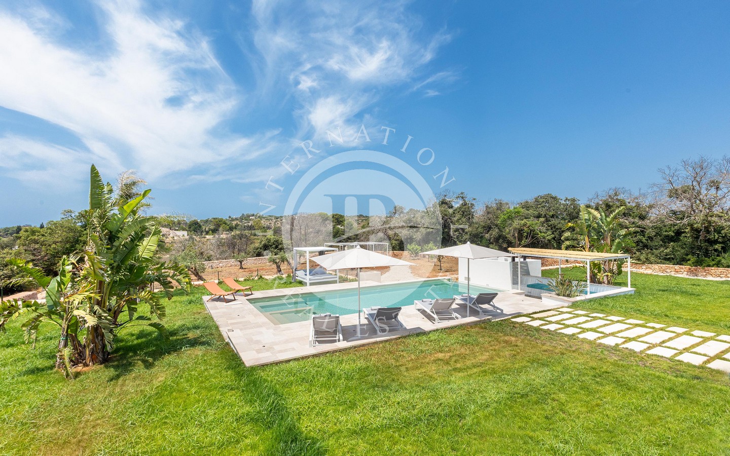 Infatti, la Villa Vista Mare insiste su un lotto di terreno di 8.000 mq, in parte caratterizzato dalla presenza di alcune piante di tipo mediterraneo, in parte, nella Zona Piscina, sistemato a prato inglese.