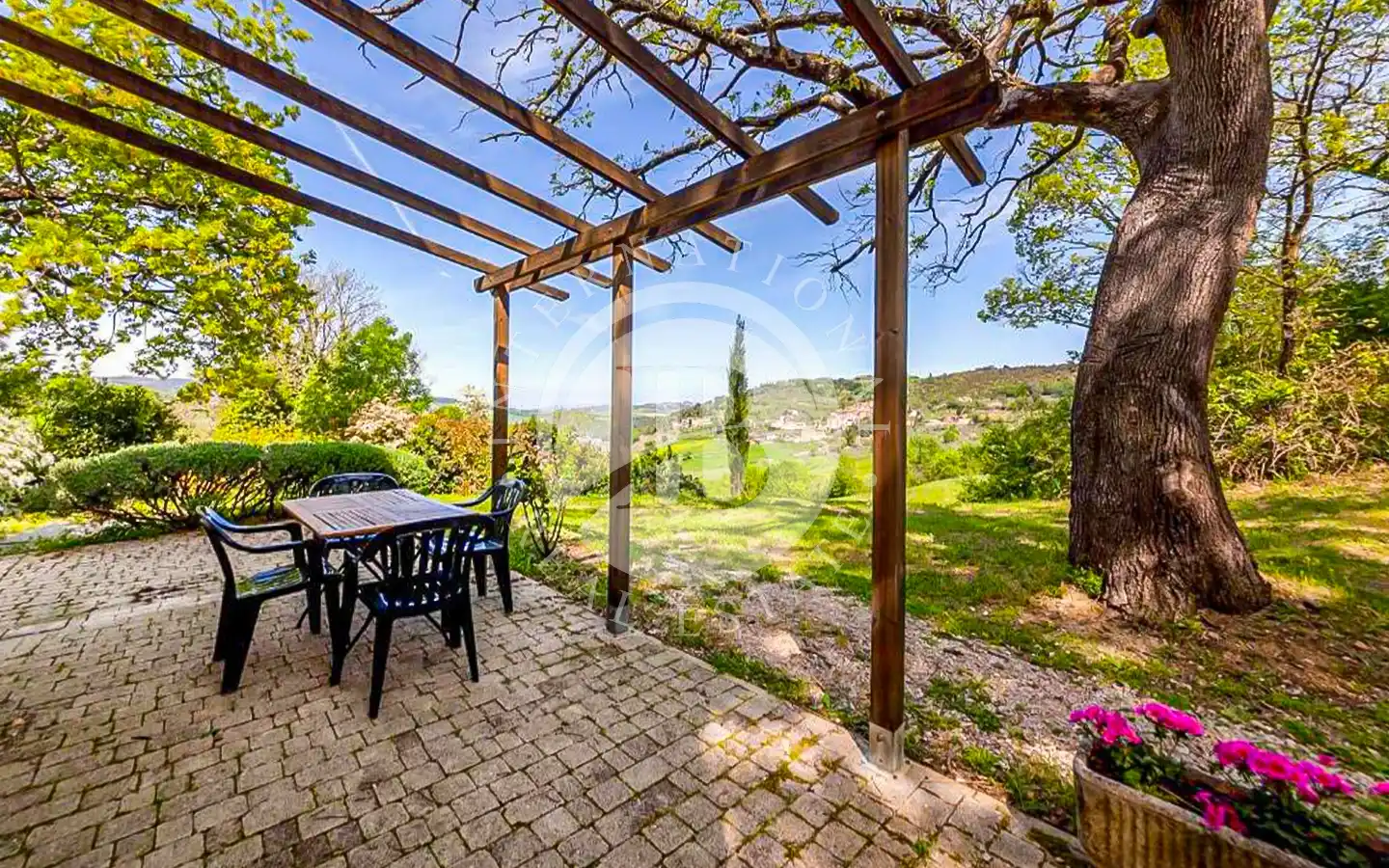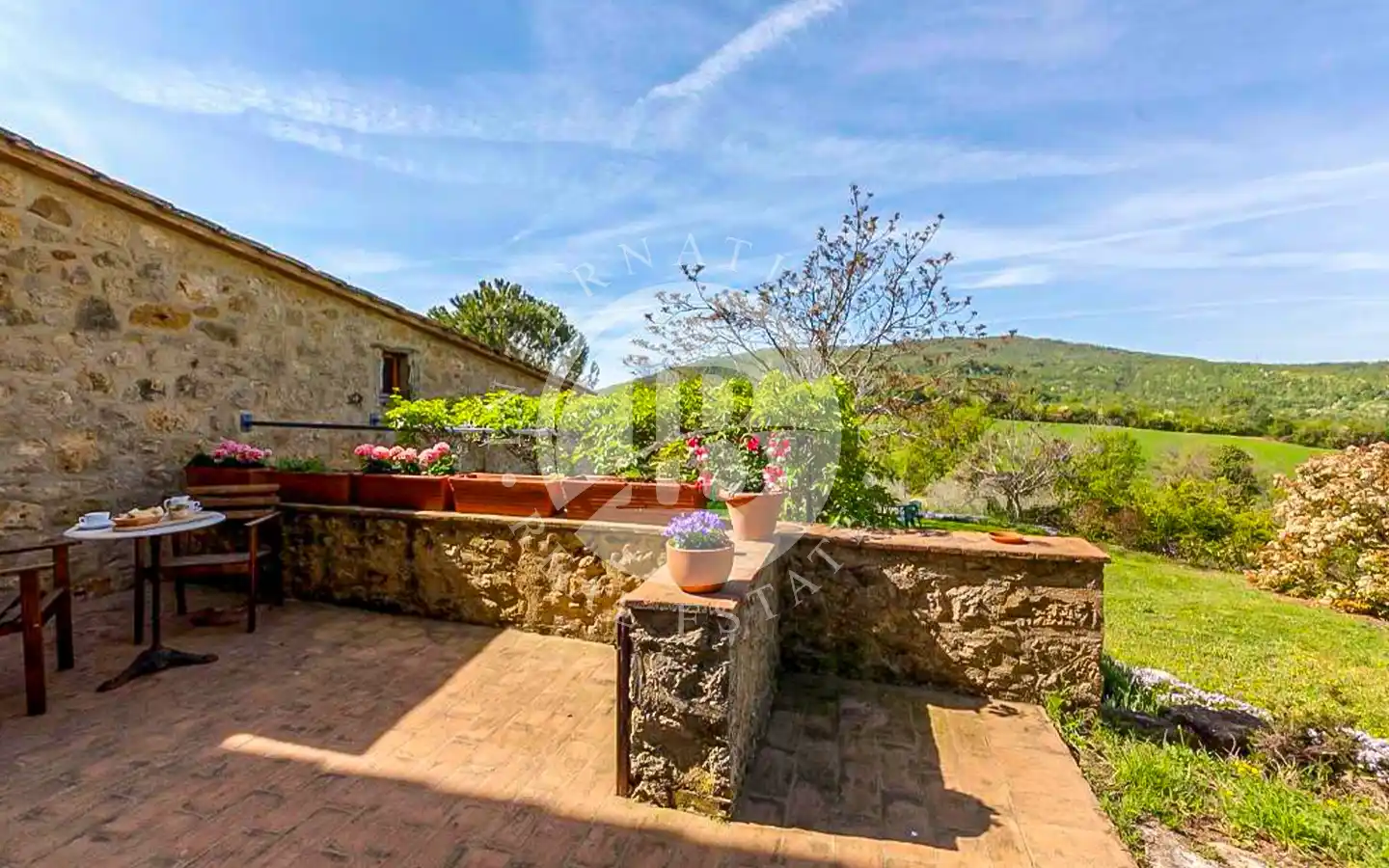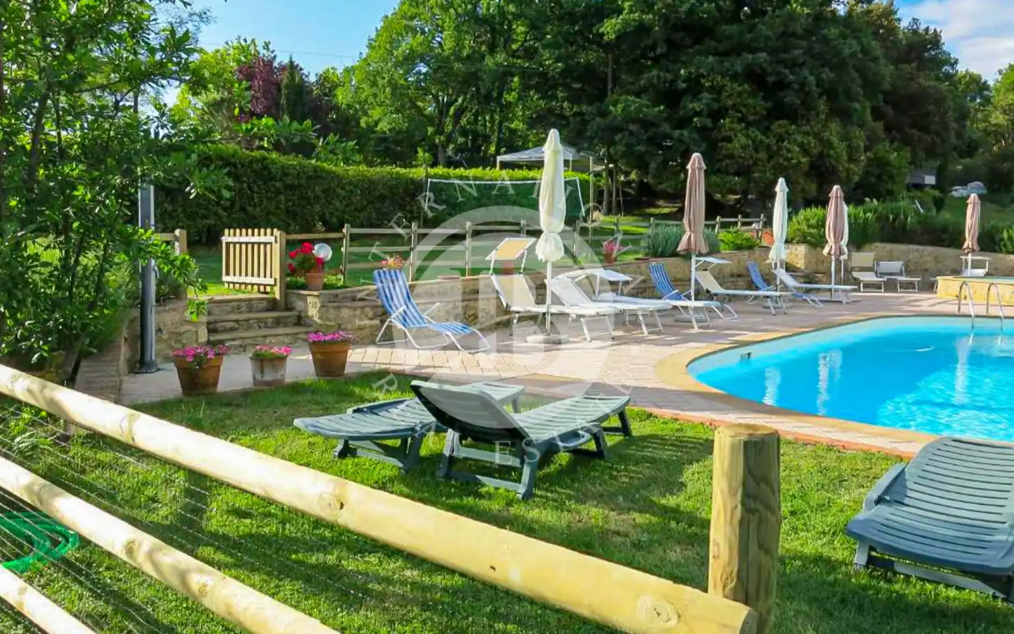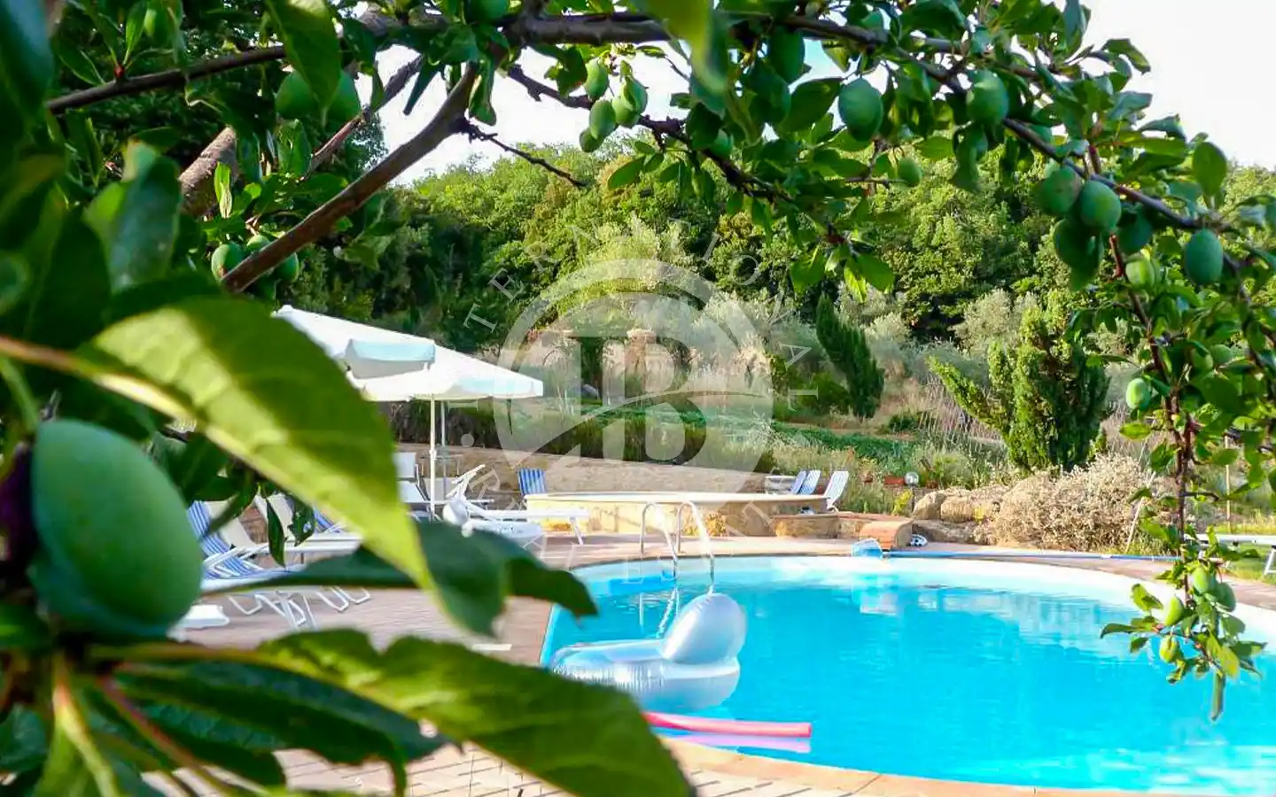 Роскошный фермерский дом окружен большим садом, который ведет к очаровательной пристройке с двумя спальнями и отдельными ванными комнатами, идеально подходящей для гостей или персонала. На территории усадьбы есть два бассейна, один для взрослых и один для детей, гармонично вписанные в ландшафт. На 58 гектарах земли расположено около 7 гектаров оливковых рощ, 40 гектаров пахотных земель и оставшаяся часть лесных массивов, что обеспечивает живописные пейзажи и высокую производительность.