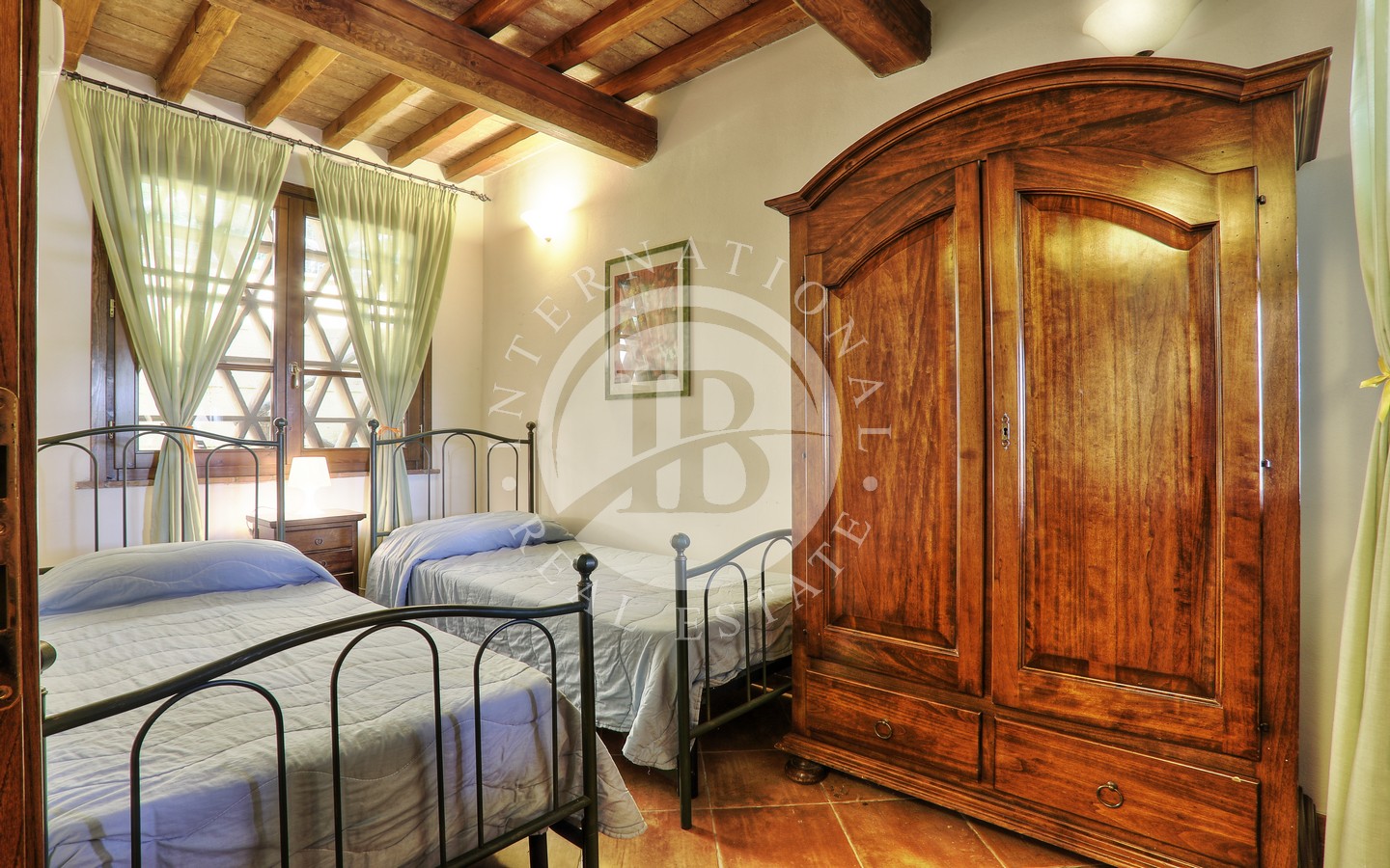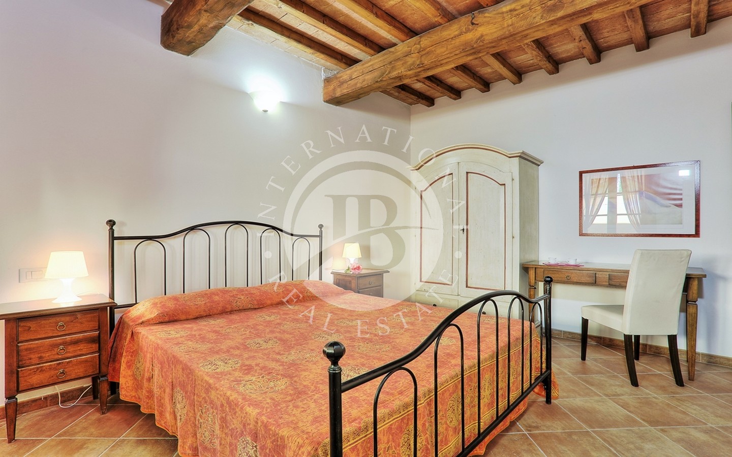 Il borgo è completato da ampi giardini all'italiana, un boschetto privato e una grande piscina, dove gli abitanti possono godere di una vista panoramica incantevole sulla campagna circostante. Il cancello d'ingresso si apre su un viale che conduce alla zona privata, con posti auto privati e un ambiente perfetto per vivere nella tranquillità più assoluta.