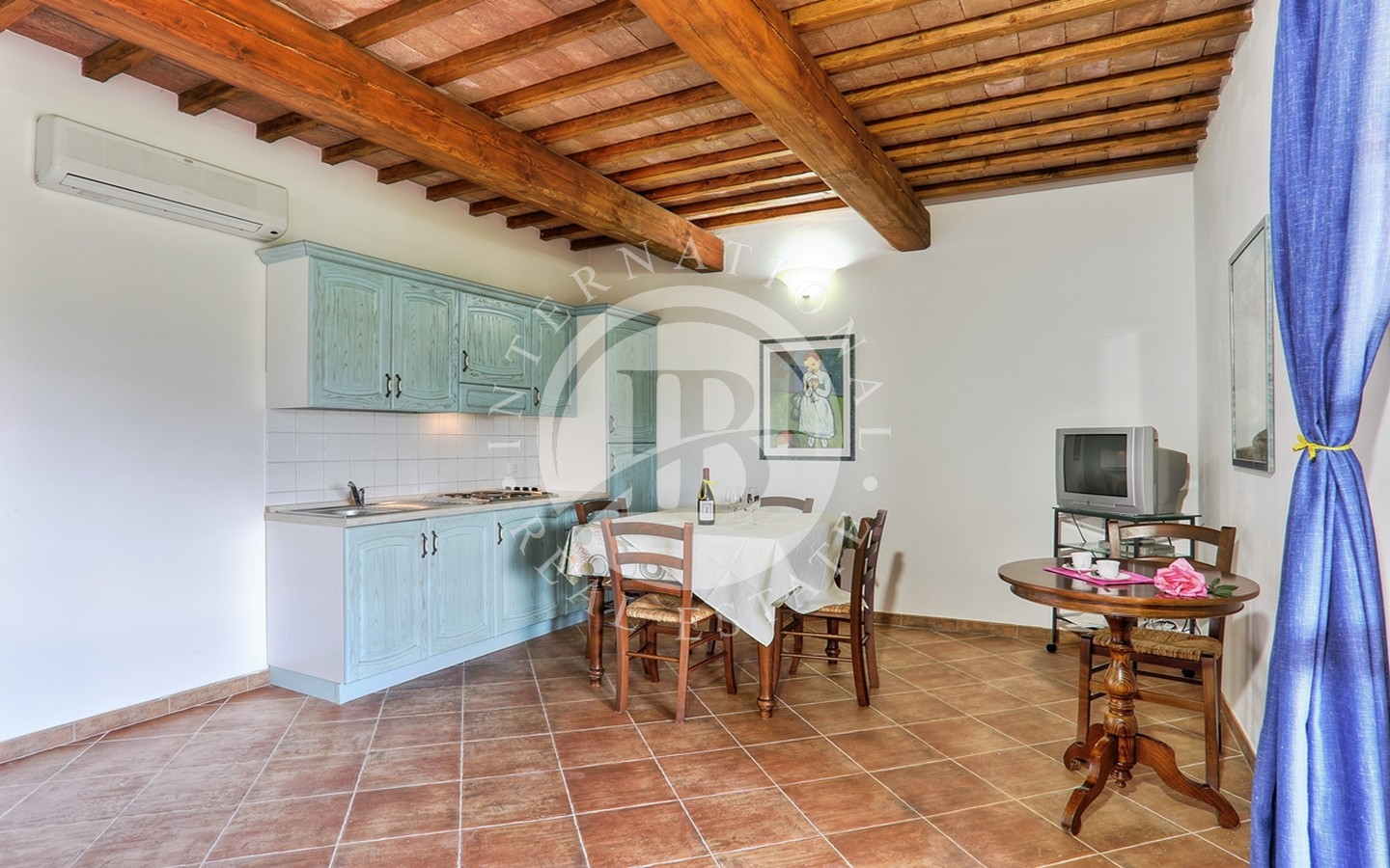terni sono caratterizzati da soffitti con travi in legno e pavimenti in cotto fiorentino, mentre l'arredo è stato scelto con grande cura e raffinatezza, creando un'atmosfera calda ed elegante. Inoltre, c'è la possibilità di rendere comunicanti gli appartamenti, offrendo ulteriori opportunità di personalizzazione.