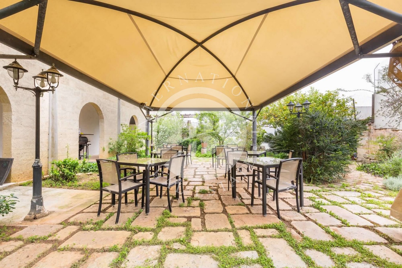 Mentre, il secondo corpo di fabbrica, accessibile sia dal cortile interno privato che dal giardino, è un emblema di stile, eleganza e massimo comfort, che ospita 1 Soggiorno, 5 Camere da Letto e 4 Bagni.