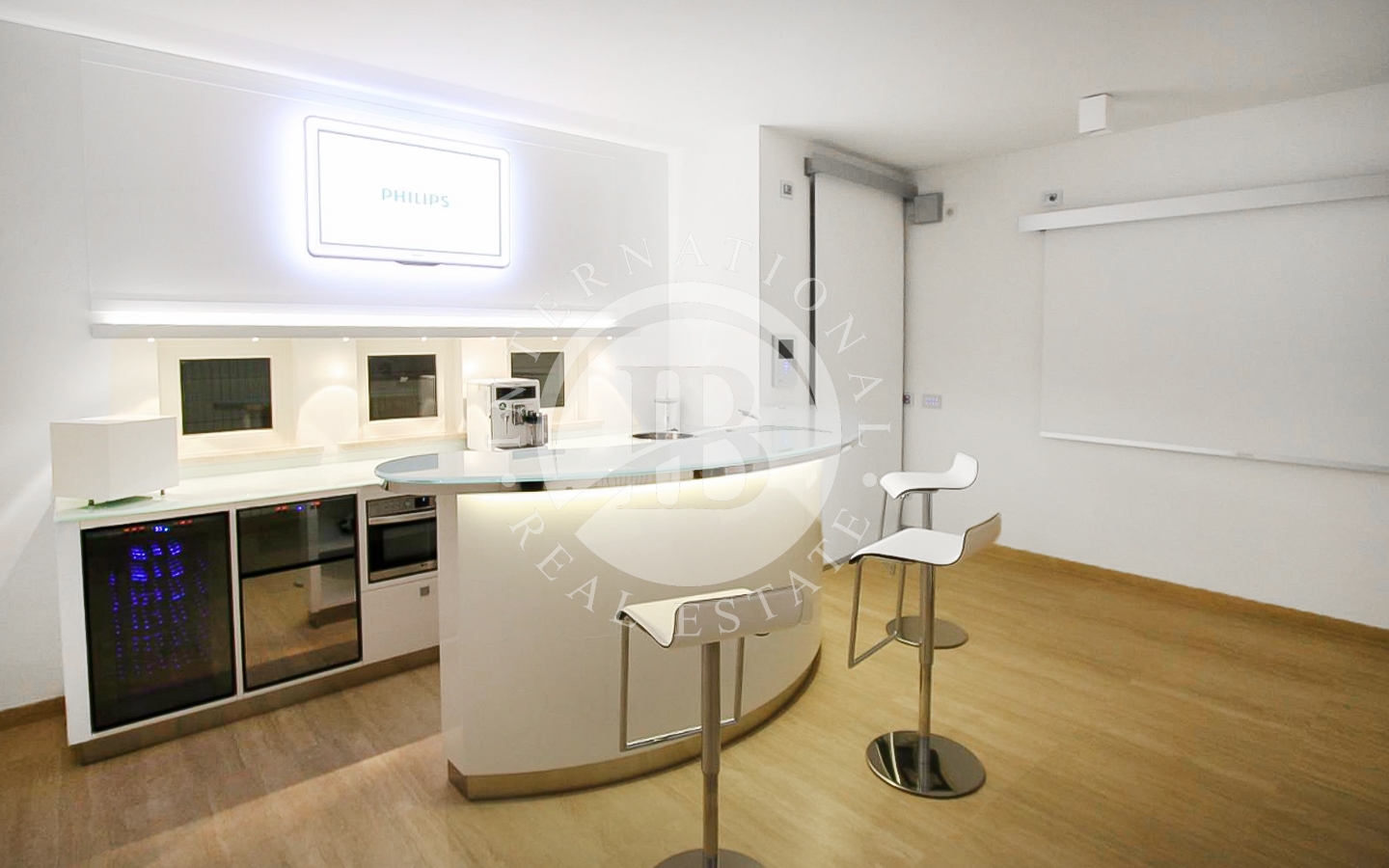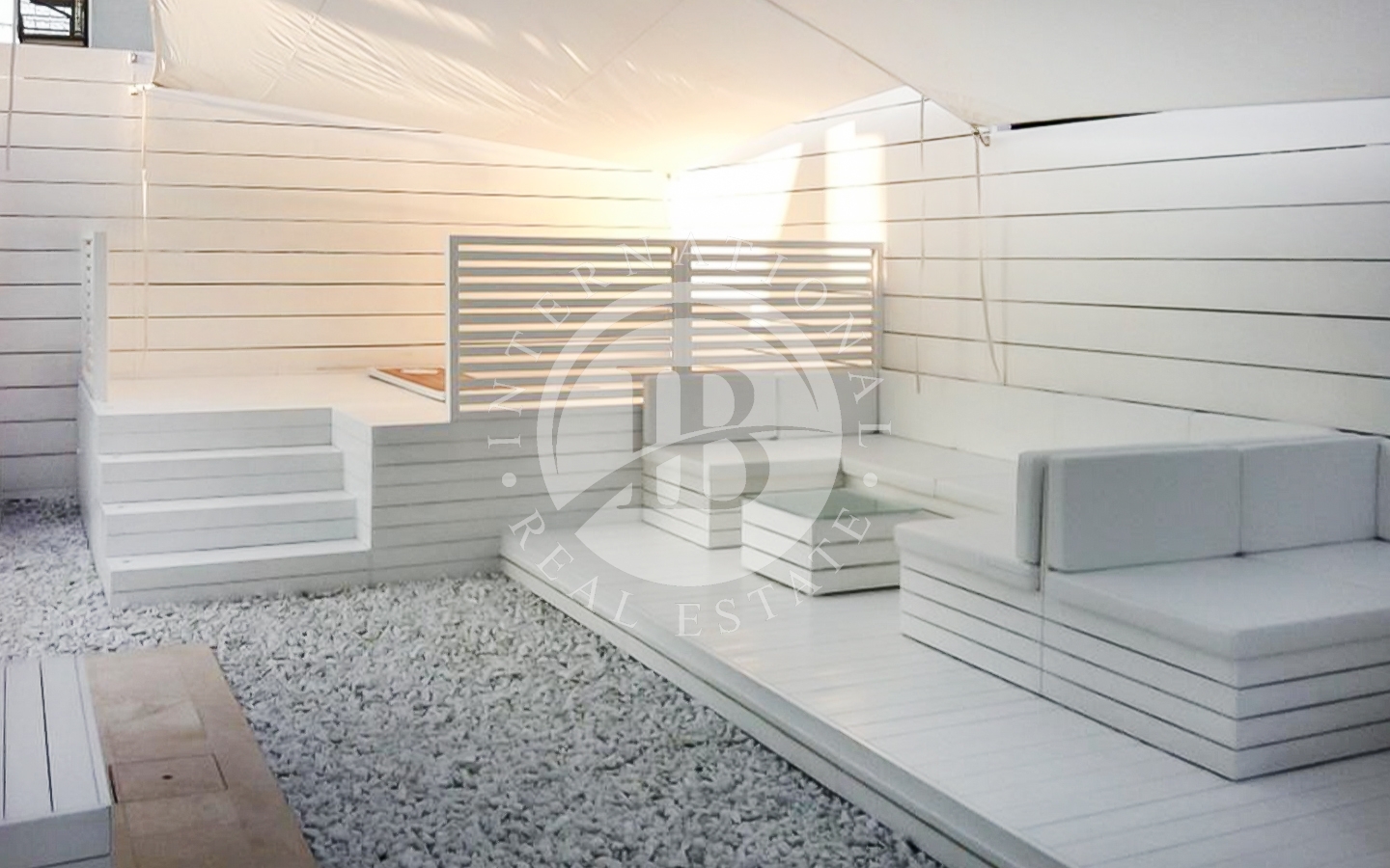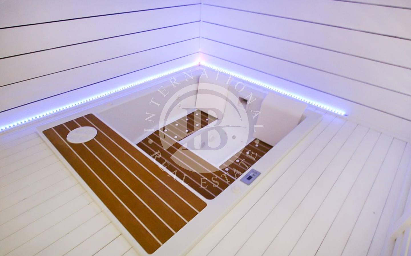 gliente. I 5 bagni, di cui uno con vasca idromassaggio e uno con sauna, sono rifiniti con sanitari sospesi e docce di design.