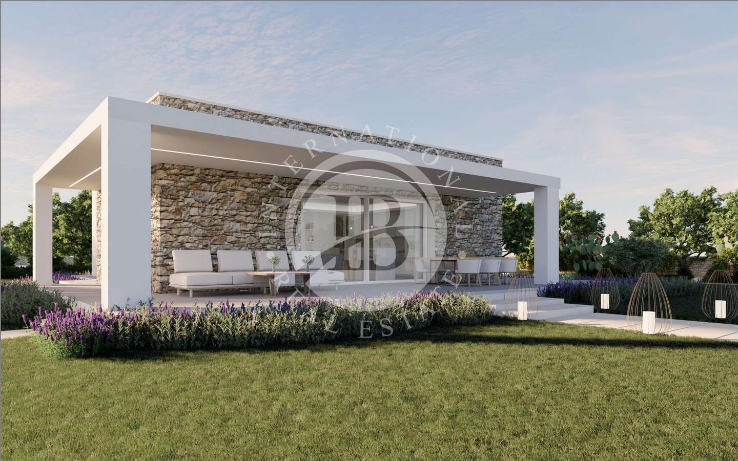 Villa di 145mq con piscina di nuova costruzione nella tranquillità della campagna salentina. Come da progetto, la villa, che si sviluppa interamente al piano terra, è composta da un ampio living con angolo cottura, un comodo disimpegno con bagno di servizio e 3 camere da letto, tutte con bagno en suite. Un luminoso porticato di circa 45mq, poi, ti permetterà di vivere in simbiosi con gli ambienti esterni che si affacciano sulla rigogliosa area verde e sulla zona della piscina. Nel cuore dell’area esterna si inserisce la splendida pisc…