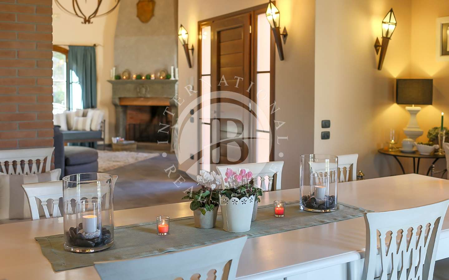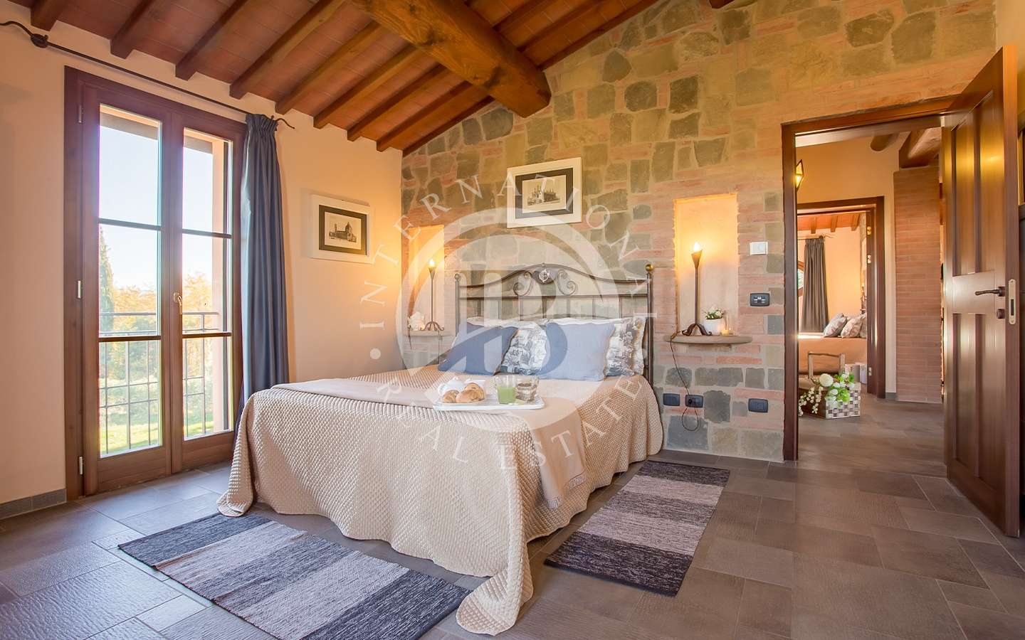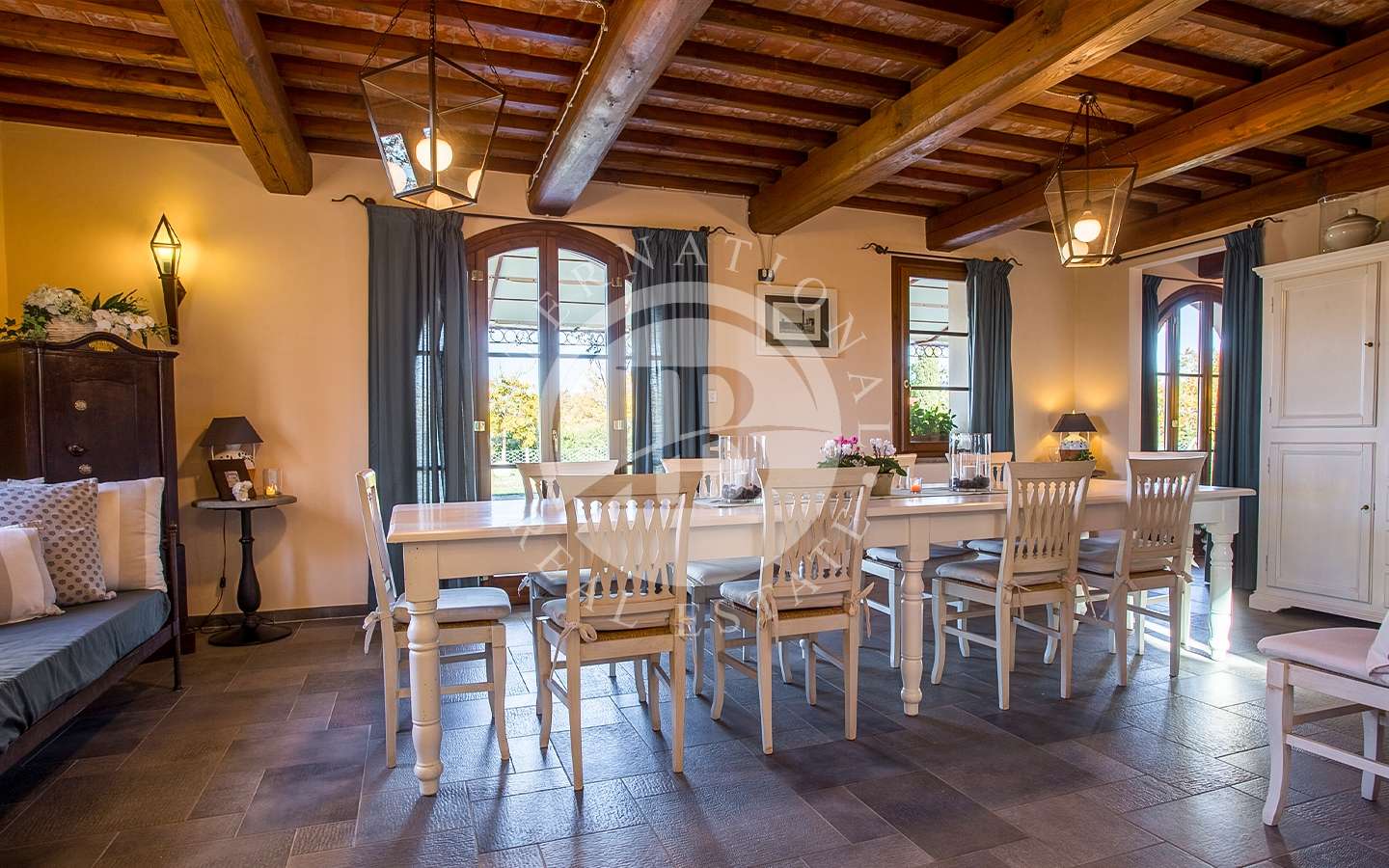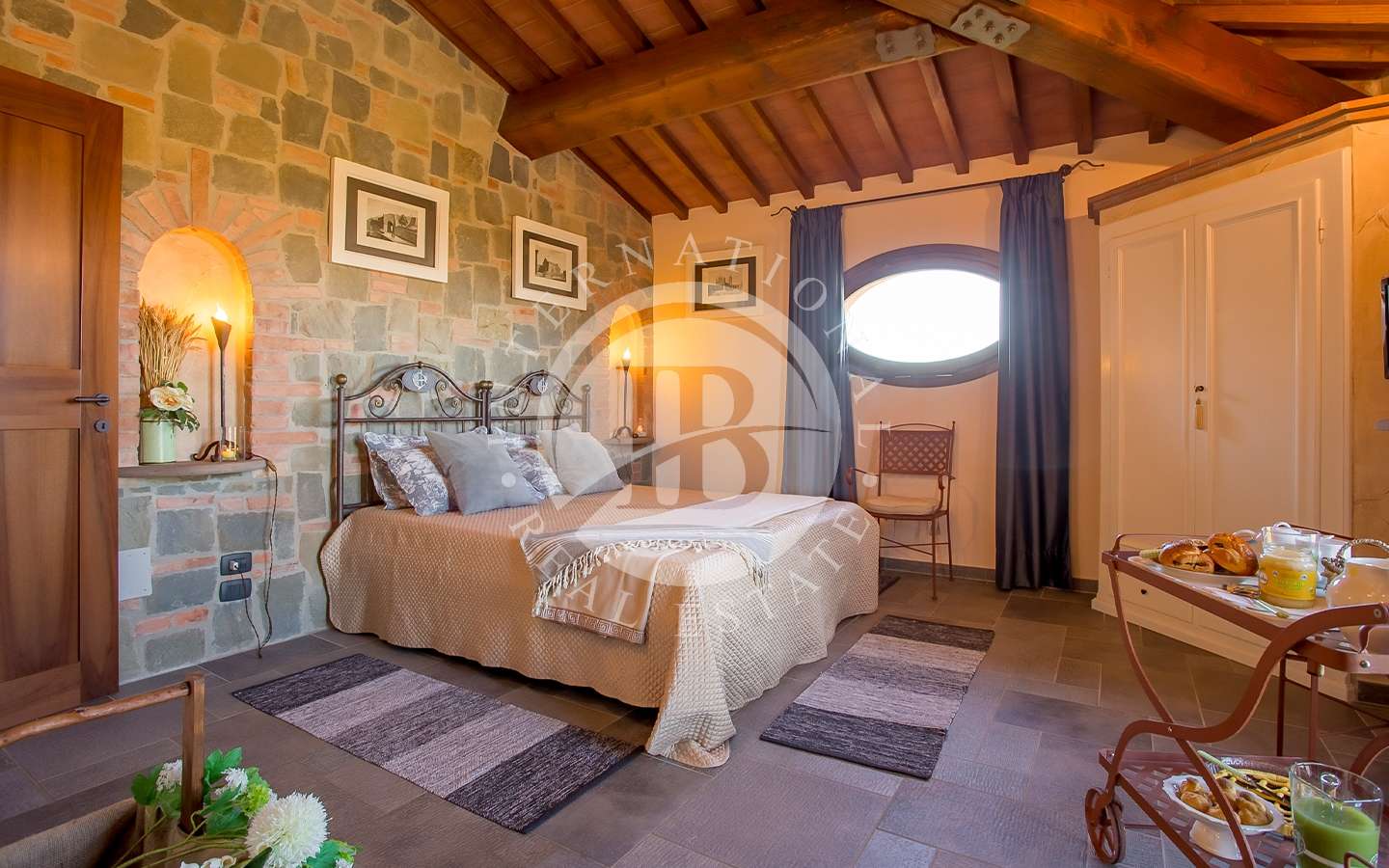 Questa sontuosa residenza si estende su una superficie complessiva di 350 mq, distribuiti con saggezza e stile. Attraverso un portico accediamo all'ingresso della dimora, dove un ampio open space accoglie gli ospiti con luminosità e spazialità. La zona comprende un salone con un caratteristico camino rustico, un soggiorno destinato alla zona pranzo, una cucina in muratura completamente attrezzata, un pratico ripostiglio, una camera matrimoniale con bagno privato e un secondo bagno appositamente attrezzato per disabili. Una raffinata s…