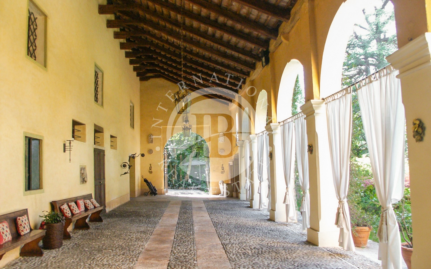All’ingresso principale si accede attraverso il portico affiancato alla residenza signorile, ma sono presenti anche altri due accessi, di cui uno secondario sul retro della dependance e un terzo che offre accesso al piccolo parco del grazioso oratorio gentilizio privato.